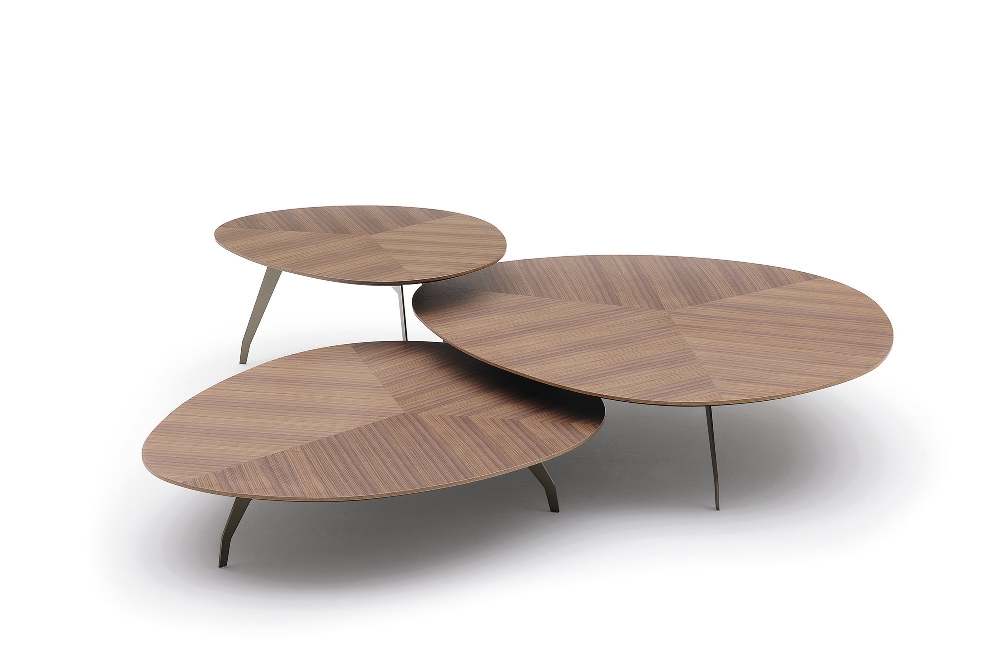 A soft design combined with graceful irregular lines are the leitmotif of the ISLAND side table collection. The wooden tops feature a precious inlay work that exploits the natural grain of wood to create a geometric design with a strong character. Available in 3 different sizes and heights, when used together, they create original layouts for your living room.