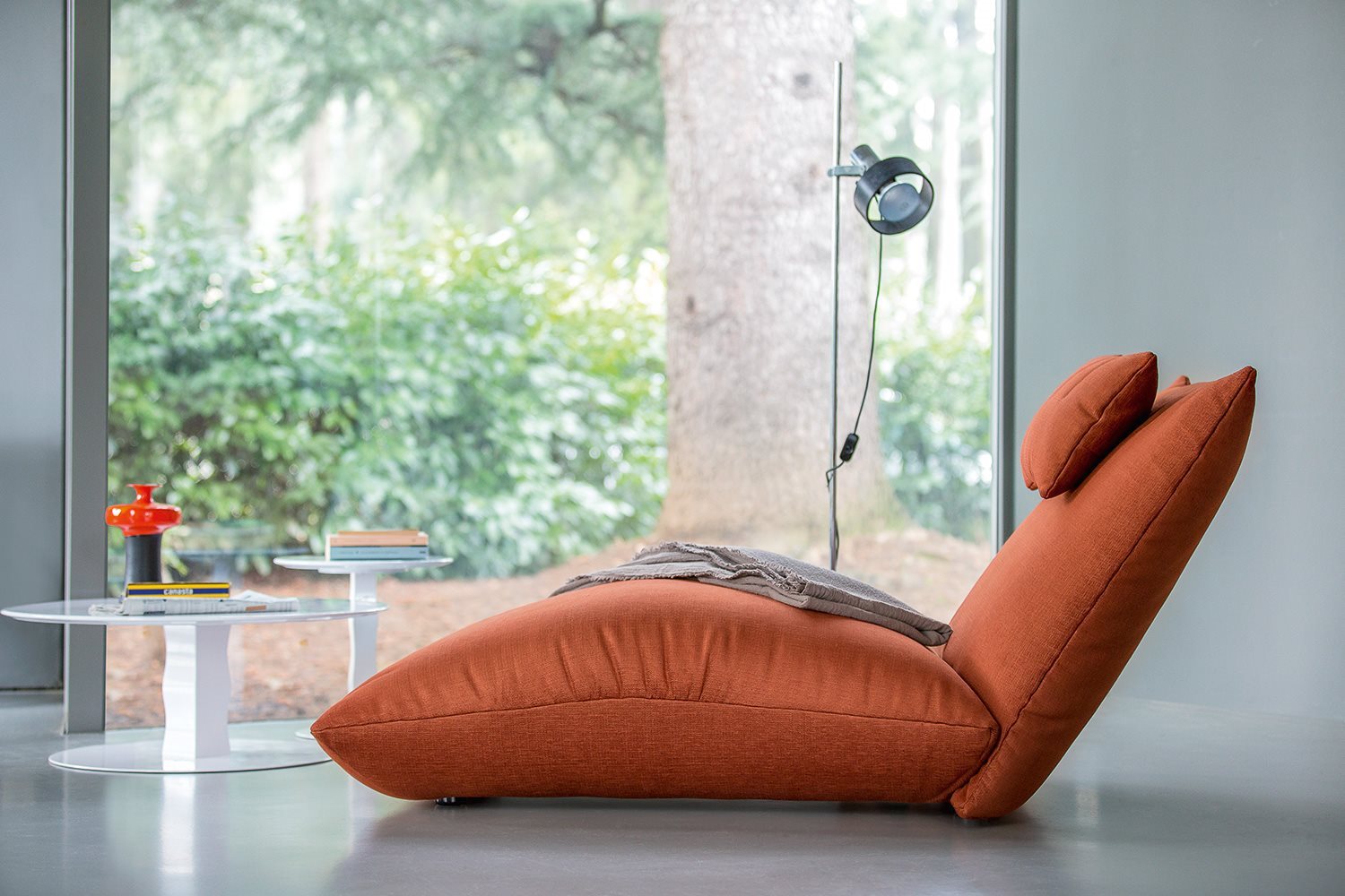 Bellavita is characterized by its soft and rounded shapes that evoke pillows, while the quilted seams on seats, backs and armrests give it a sleek minimalist touch. Highly versatile, its main feature is the great modularity: mix and match two back heights and seats with different widths to create an infinite range of combinations to be completed with poufs and armrests on the left or right. Looks like it’s floating thanks to its concealed feet. The range is completed by small armchairs and a bed available with different headboards.
