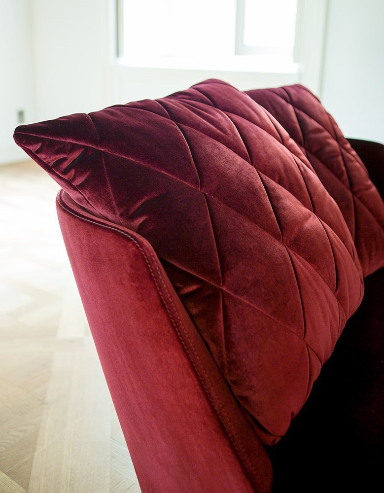 The chaise longue AUDREY are characterized by rounded and romantic lines. They are the result of a perfect combination between a classic and contemporary style. The special back cushions with diamond sewing make them unique pieces.