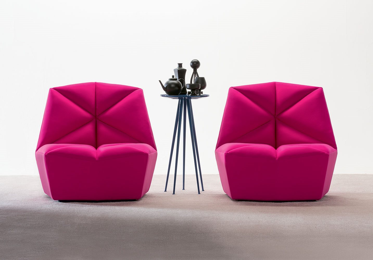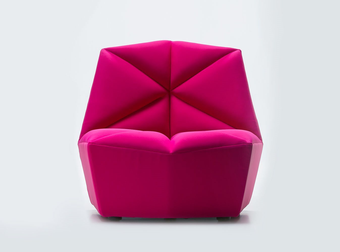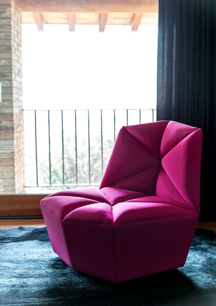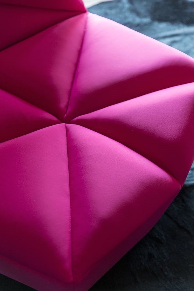 A modern armchair with ample padding, where the proportion and balance between the seat and back create a mysteriously fascinating style.The special production of the padding recalls the oriental culture of origami, where the final, seemingly simple form, exalts a highly complex and refined working method.Embracing comfort for a very original armchair, an informal and contemporary item with distinct and bold colours. A perfect union between Alberta casual design and refined, contemporary finishes.