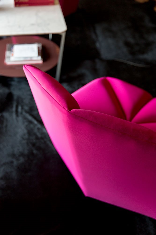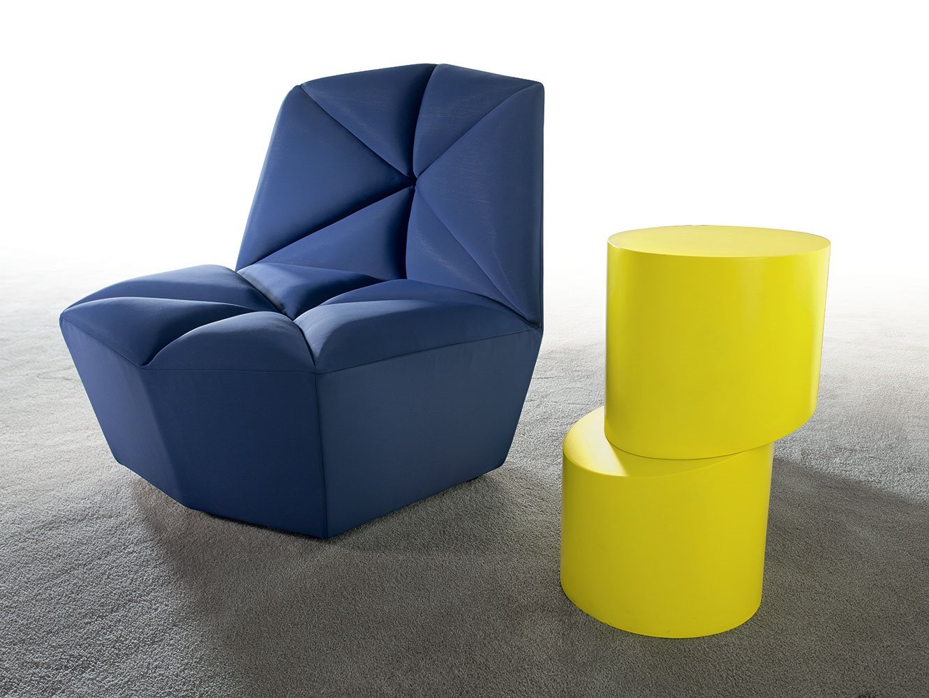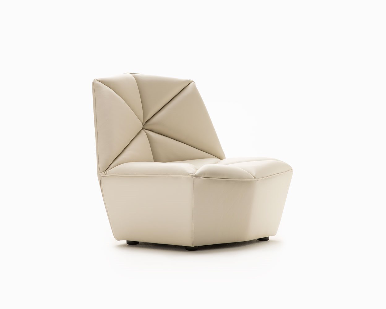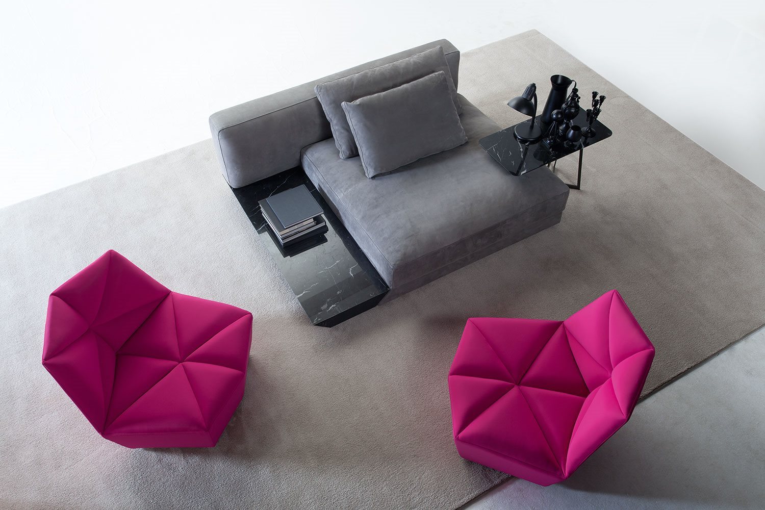A modern armchair with ample padding, where the proportion and balance between the seat and back create a mysteriously fascinating style.The special production of the padding recalls the oriental culture of origami, where the final, seemingly simple form, exalts a highly complex and refined working method.Embracing comfort for a very original armchair, an informal and contemporary item with distinct and bold colours. A perfect union between Alberta casual design and refined, contemporary finishes.