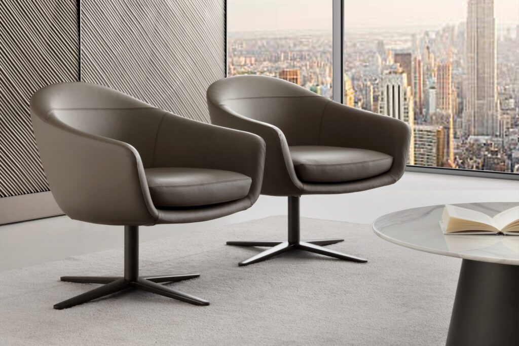 An elegant armchair with a balanced design that interacts with different styles and worlds.