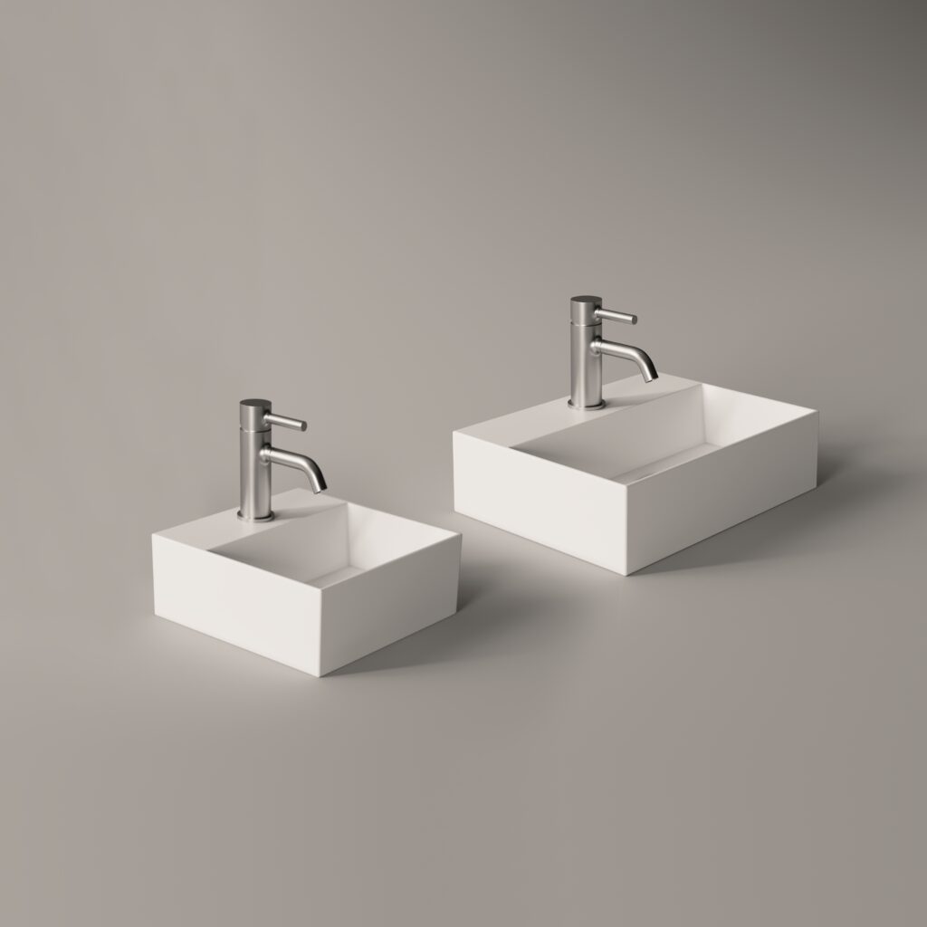 Functionality and practicality. Washbasins particularly suitable for projects for limited spaces and for bathrooms that, despite their size, do not want to sacrifice design.