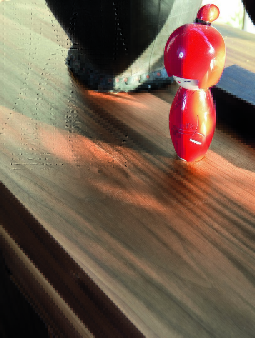 Sideboard in Natural walnut finish with various compartments of different sizes.