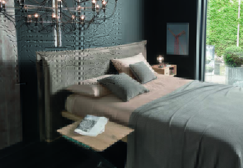 Bed Pegaso with padded headboard and wooden bed frame type 3, in alaska solid oak finish.