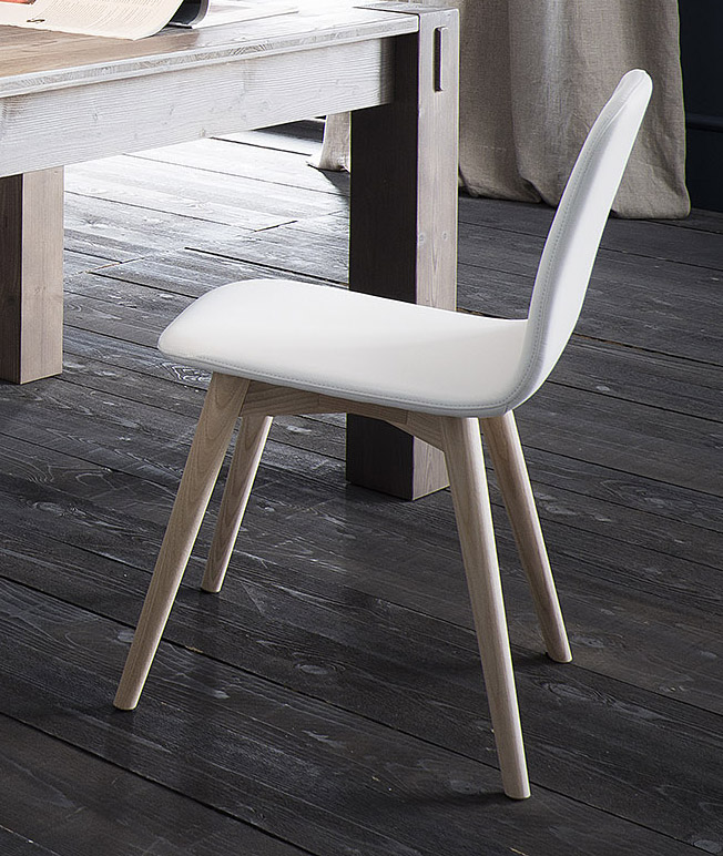 Maya chair, made of wood base and frame in eco-leather, in the photo in E5 finish.