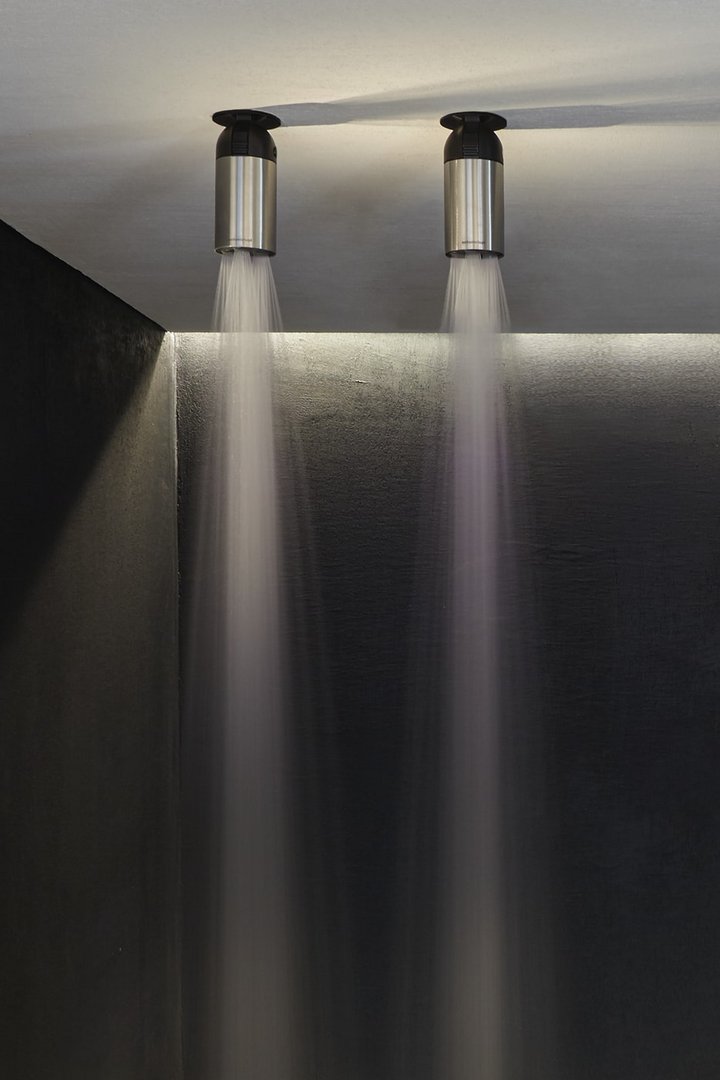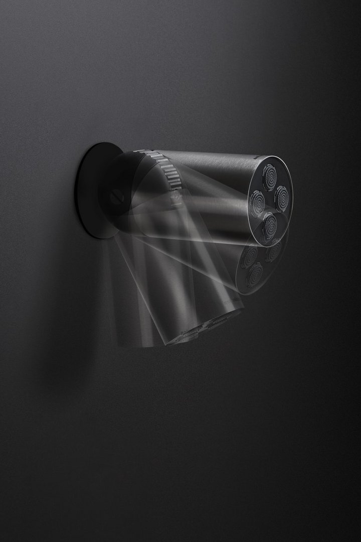 Un cilindro perfetto, compatto, essenziale, preciso, una forma che rimanda immediatamente ad altre funzioni, un’immagine che è la perfetta sintesi di tecnologia e design: Azimut è il soffione a soffitto e a parete in acciaio inox e corpo nero opaco, che ha nello snodo speciale il cuore del progetto. Un dettaglio tecnico che diventa estetico, un particolare che fa la differenza, un concept che mette la funzionalità evoluta al primo posto. Lo snodo permette infatti al soffione di ruotare e quindi orientare il getto d’acqua per più di 180° rispetto a un asse. Una caratteristica che ne moltiplica le possibilità d’utilizzo garantendo una maggiore flessibilità di installazione.
