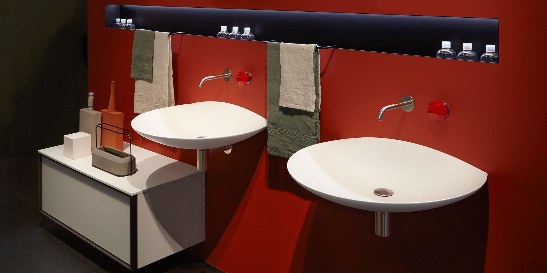 Oval top wall mounted Flumood sink, complete with drain pipe fitting and