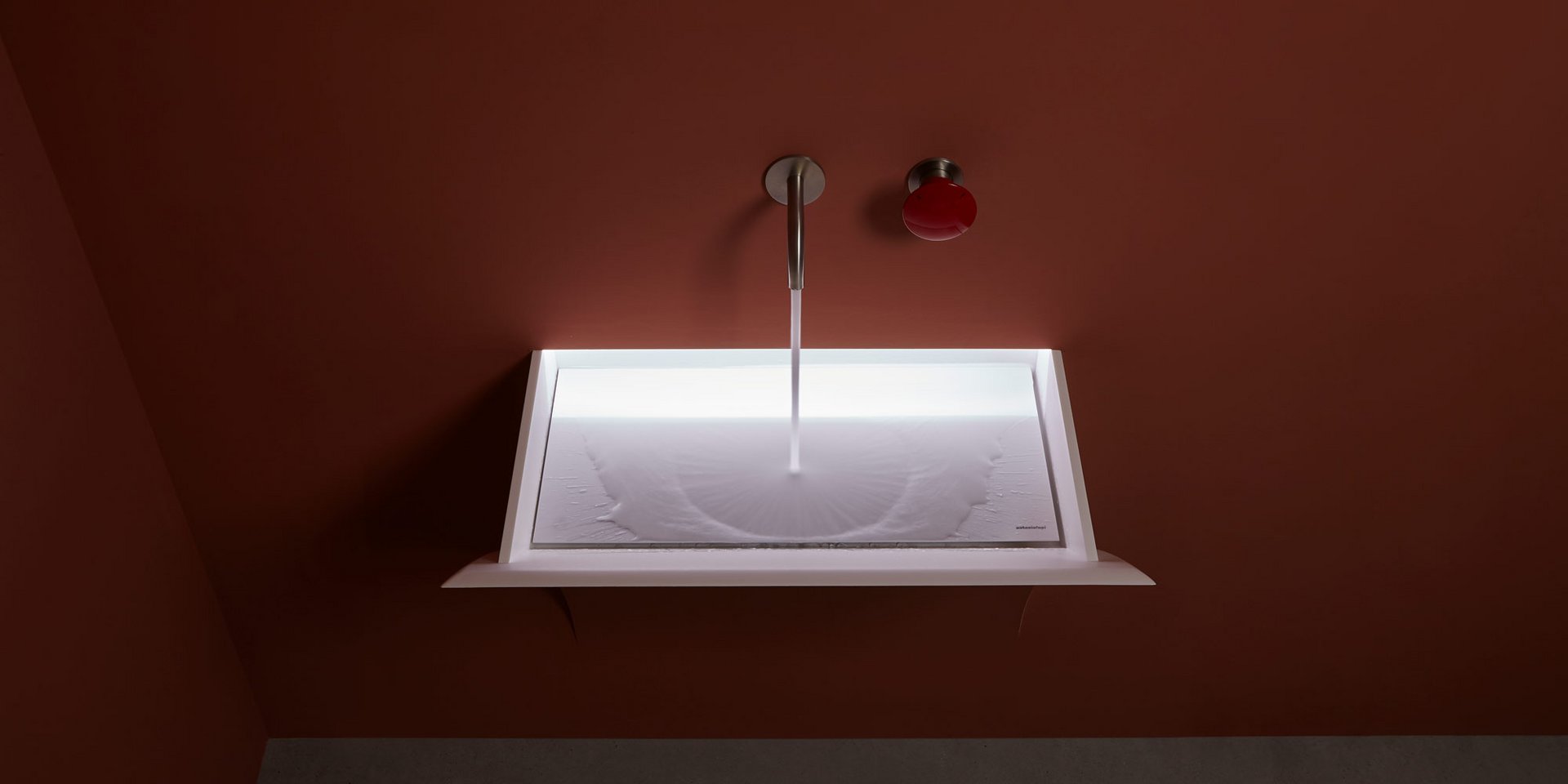 Encased Corian sink with or without led lighting, complete with inspectable drain, trap and flexible hose.