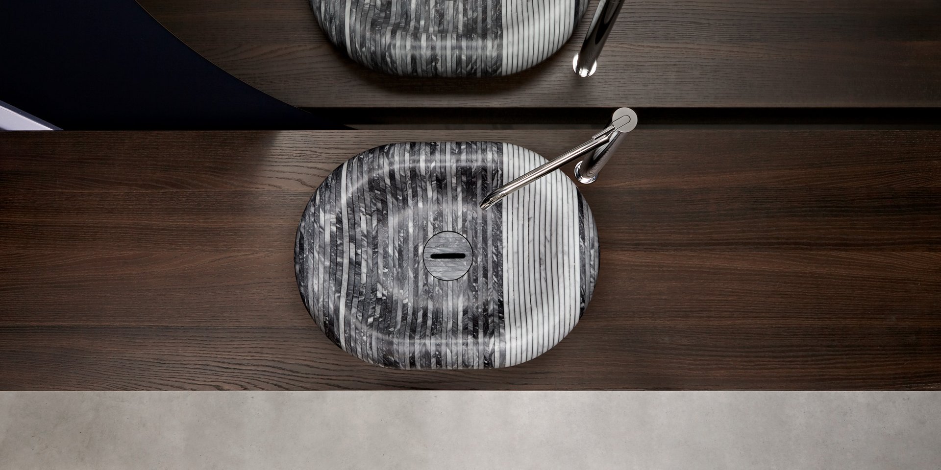 Round top mount stone sink complete with drain pipe fitting and open plug