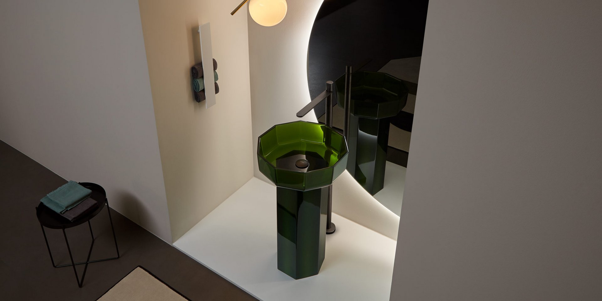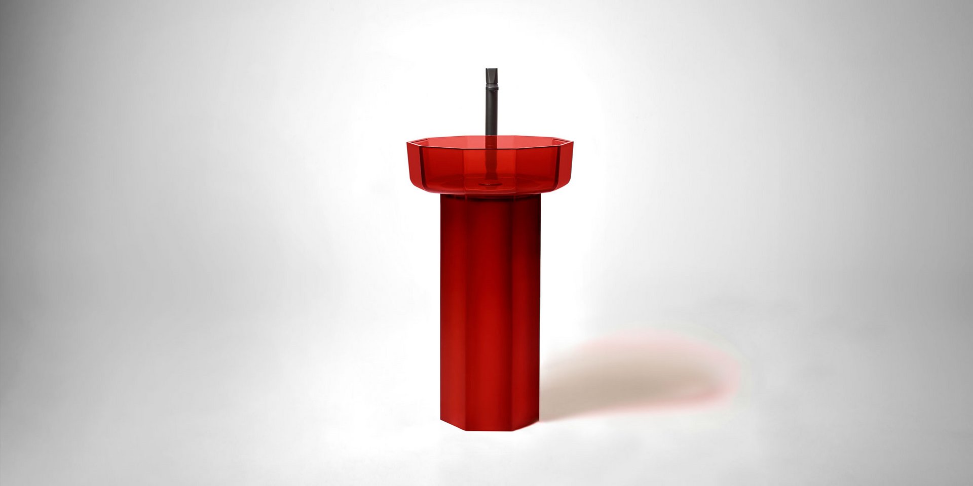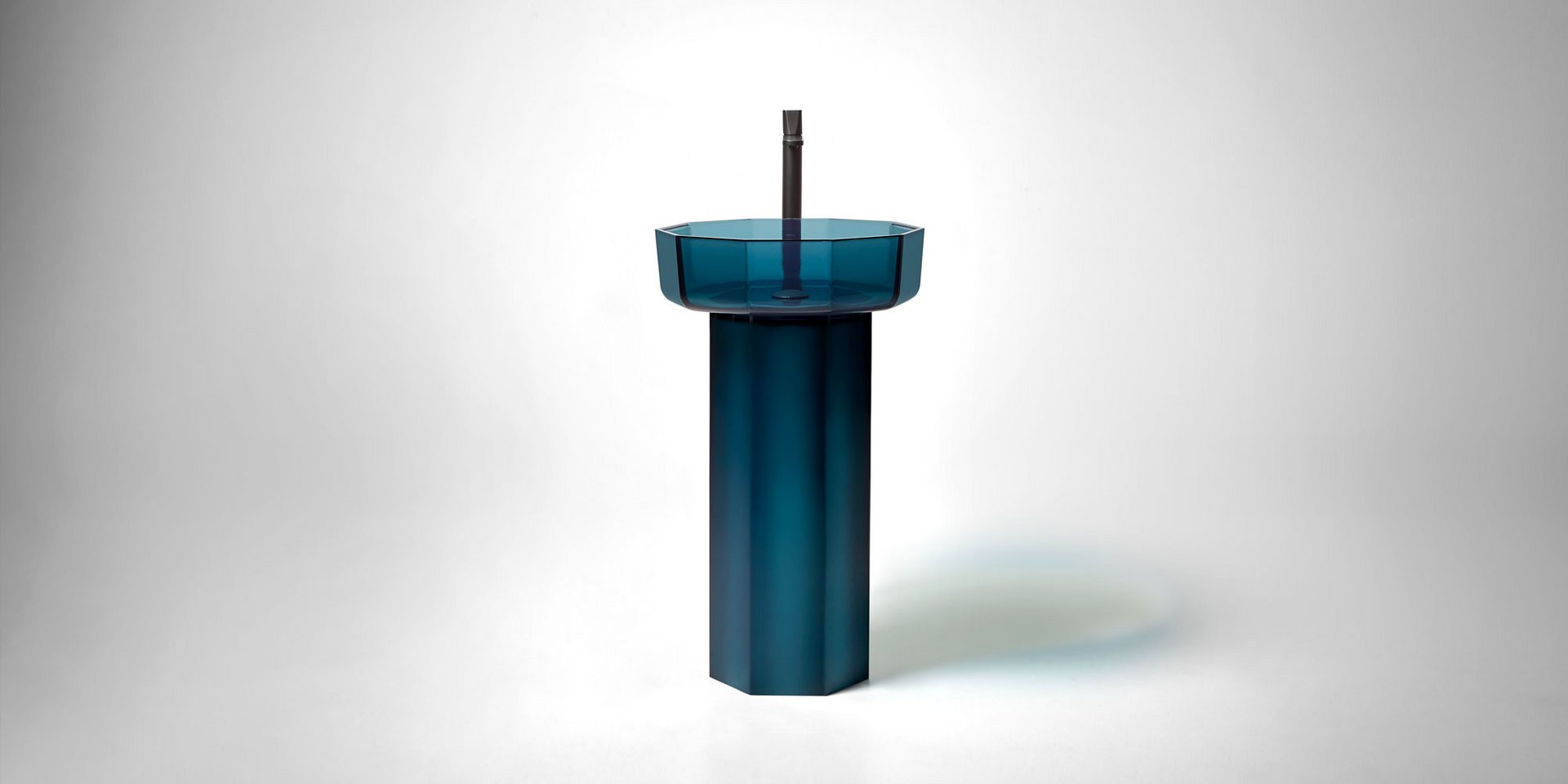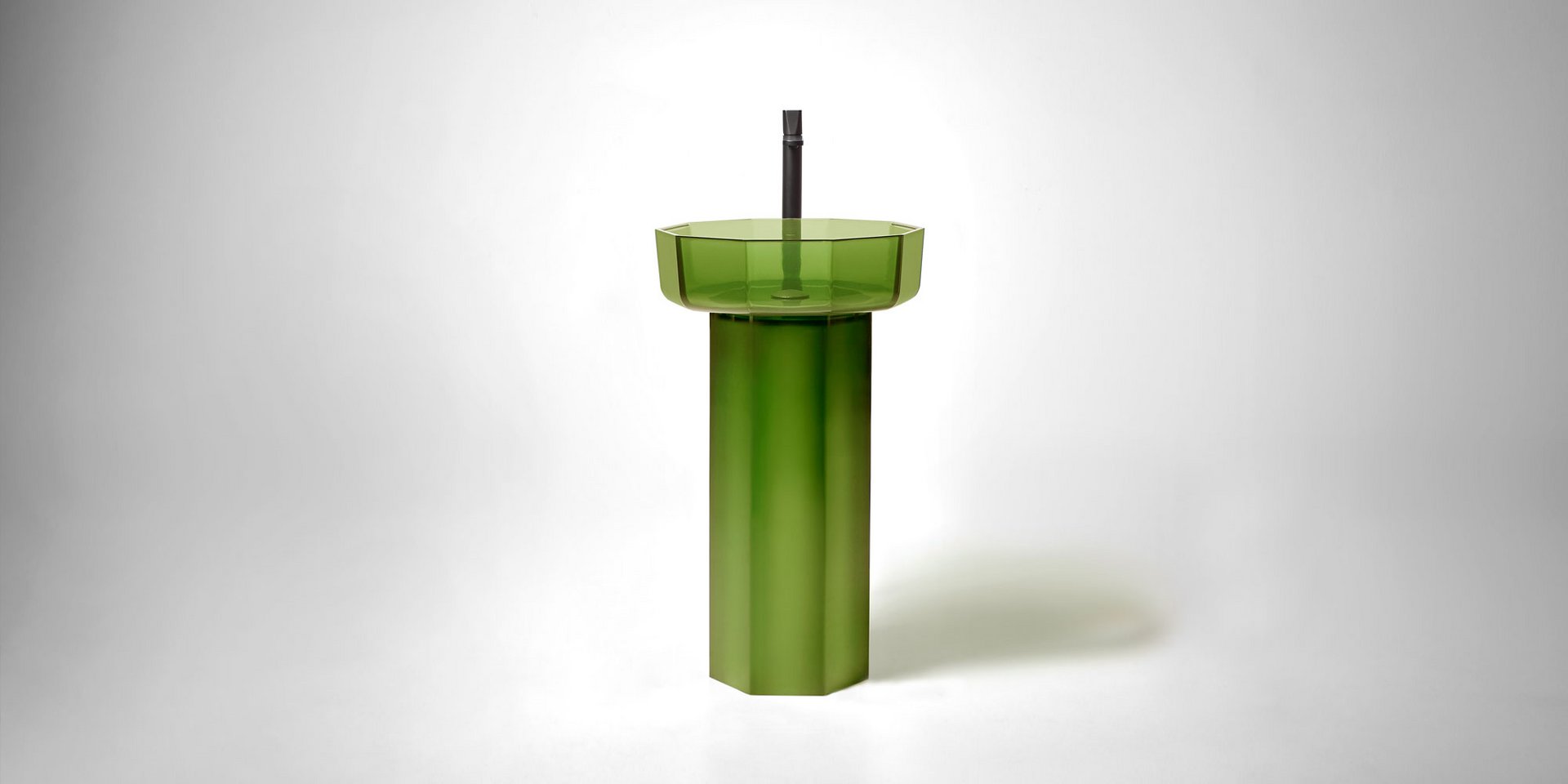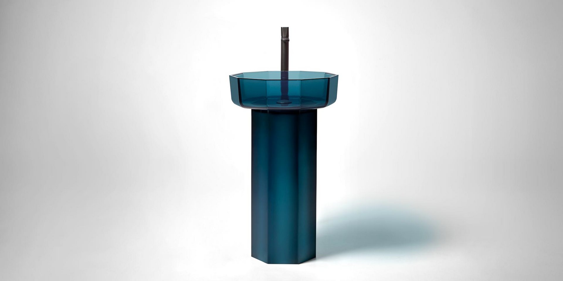 Decagonal shape sink in Cristalmood available in various colors as per our color chart, to be used top mount or combined with base Art. OPALE20 or Art. OPALE21, complete with drain pipe fitting and open plug.
