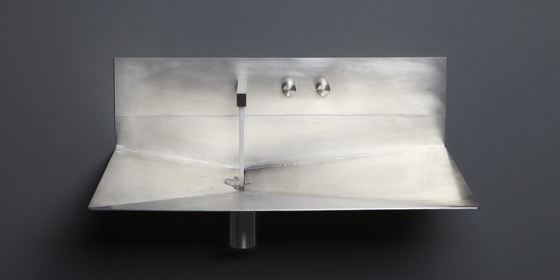 Rectangular wall mount Stainless Steel sink, complete with tap, drain pipe