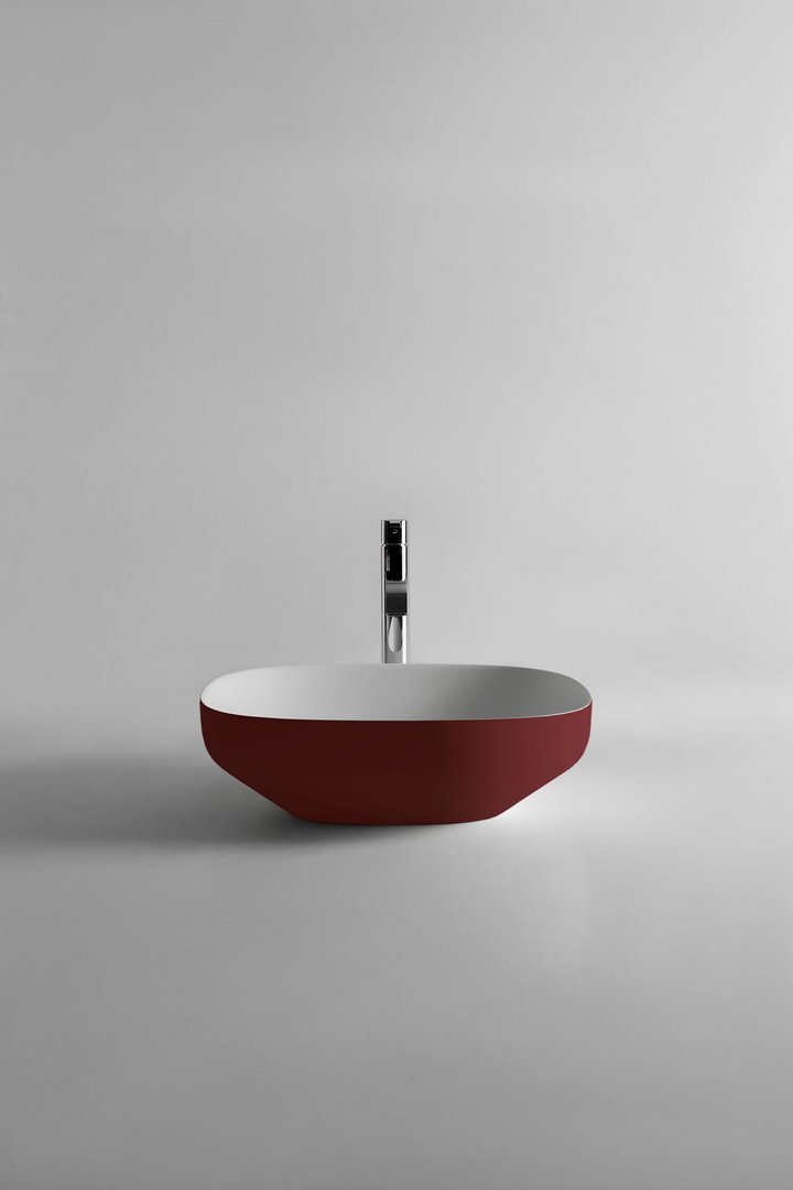 Oval top mount Flumood? sink complete with drain pipe fitting and open plug that can be lacquered externally.
