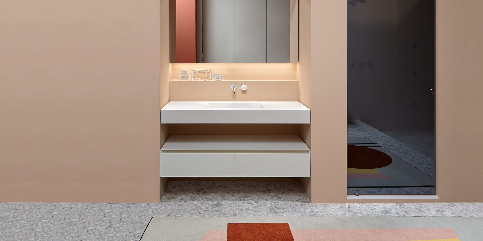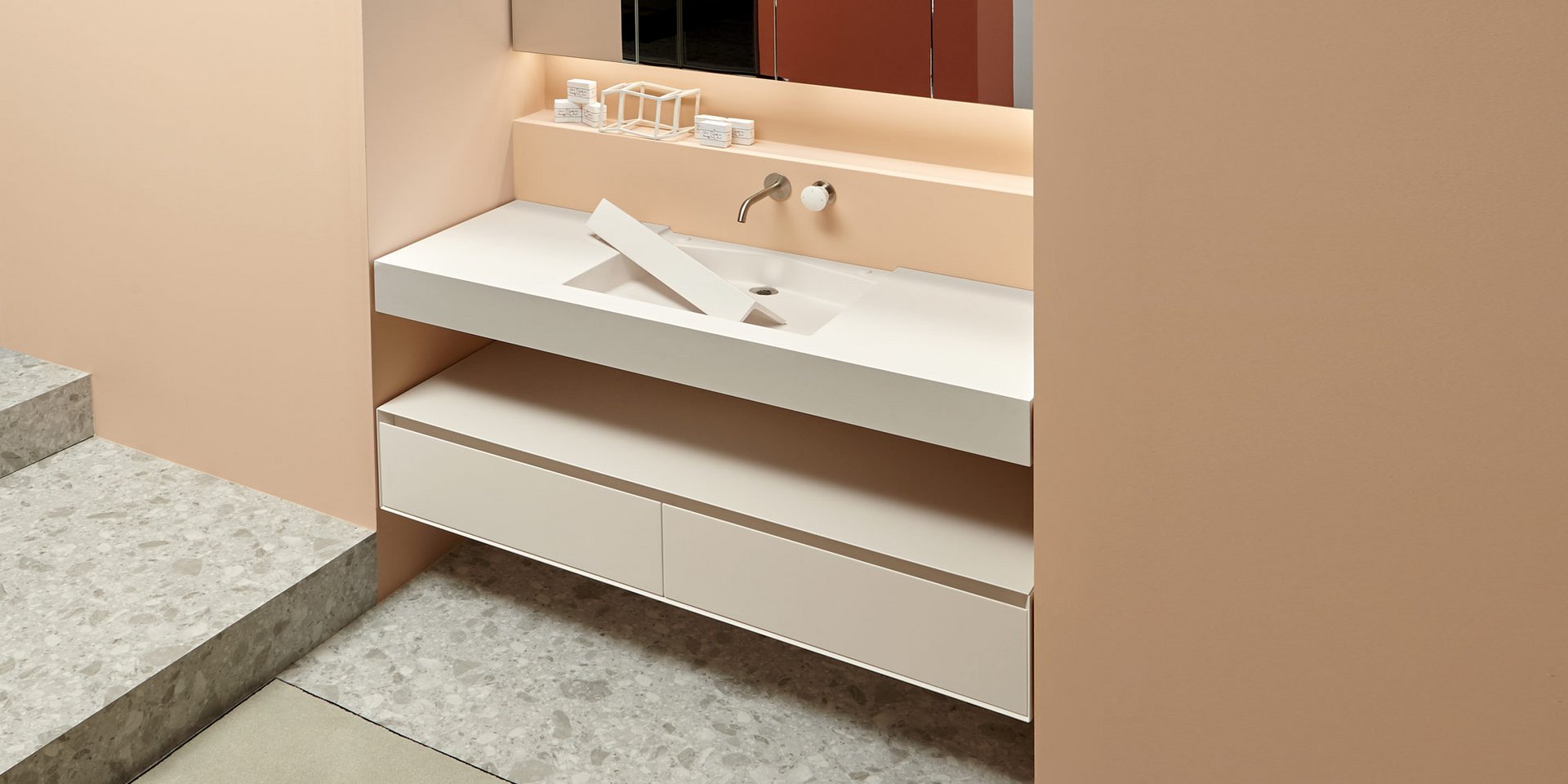 Top with integrated sink in Flumood12 mm thick, complete with drain pipe fitting and open plug