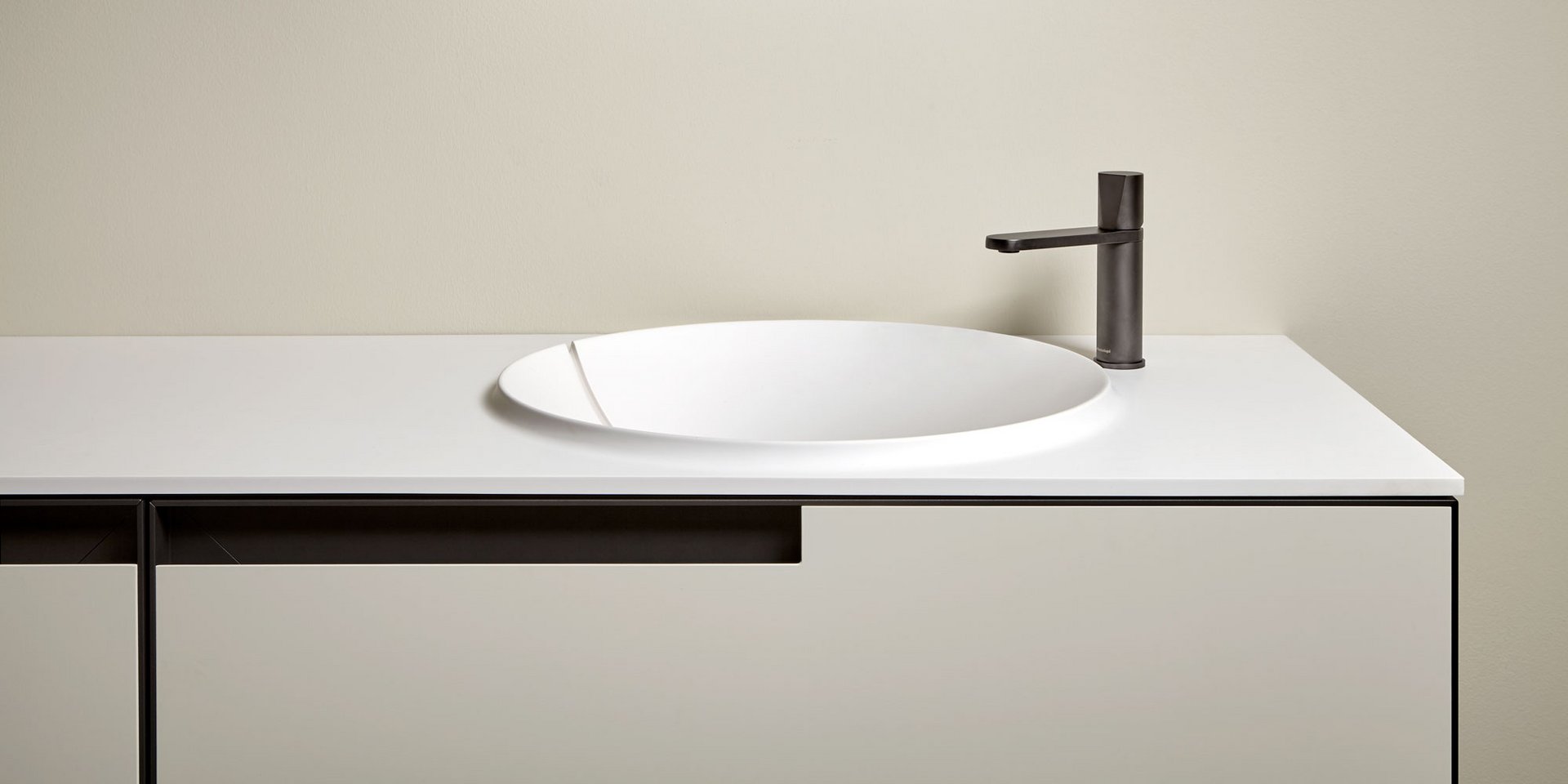 Top with integrated sink in Flumood Satin finish, 12 mm thick, complete with drain pipe fitting and open plug.