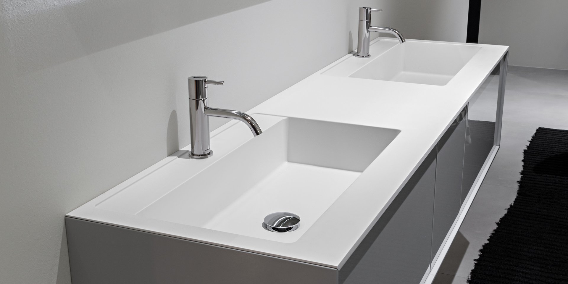 Top with double integrated sink completly in Flumood? 125 mm thick complete with drain pipe fitting and open plug.