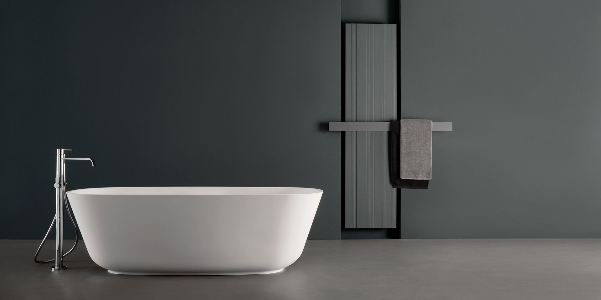 Aluminium designer radiator, combined water/electric version, matt white RAL 9010 or lacquered embossed as per our colour chart.