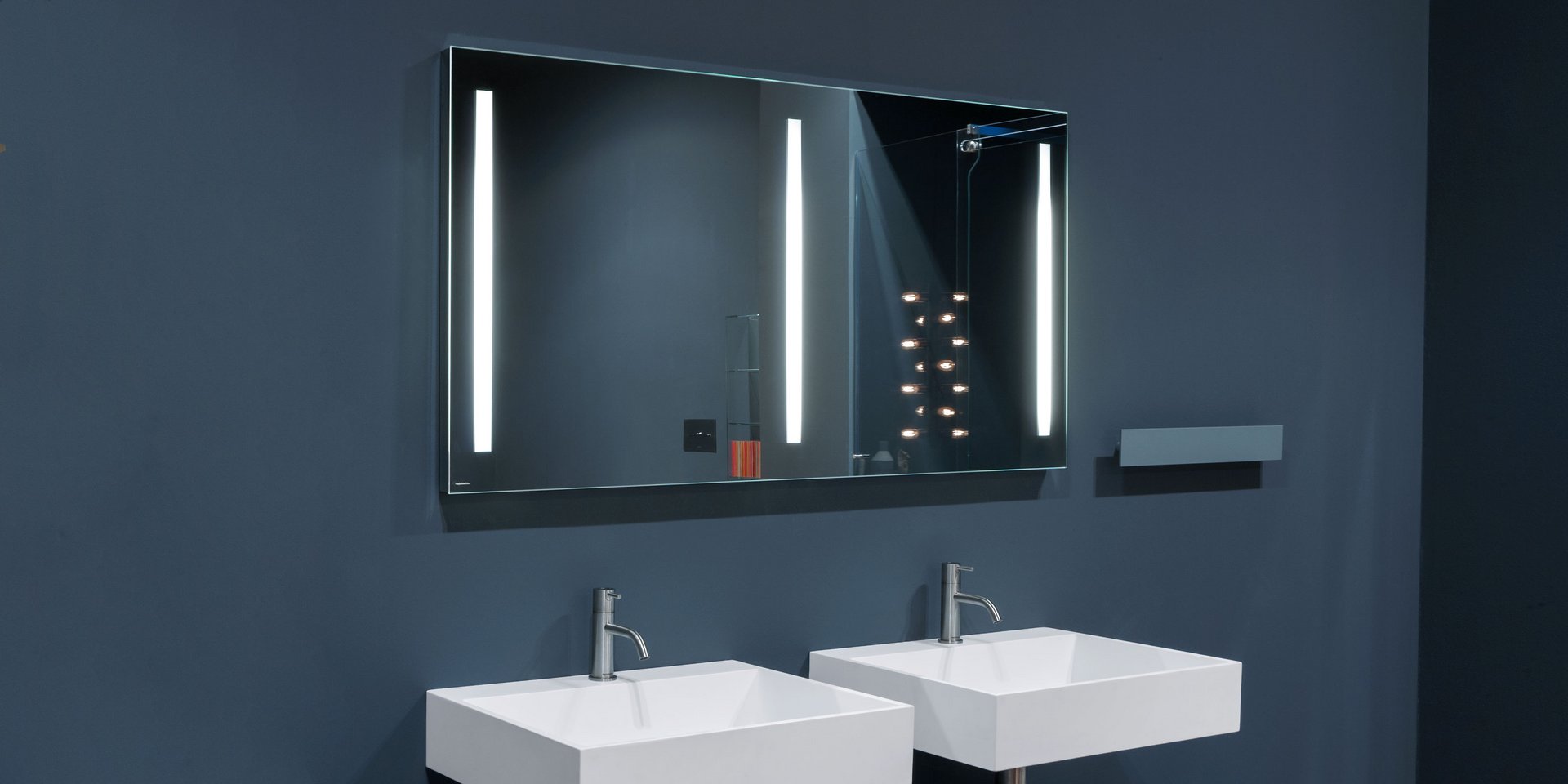 Polished edge mirror 5 mm thick with white led lighting, complete with polished stainless steel frame AISI 304