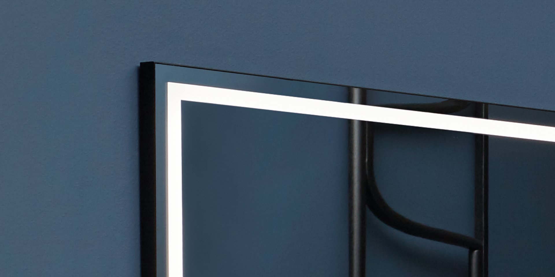 Polished edge mirror 4 mm thick with white led lighting, complete with black frame.
