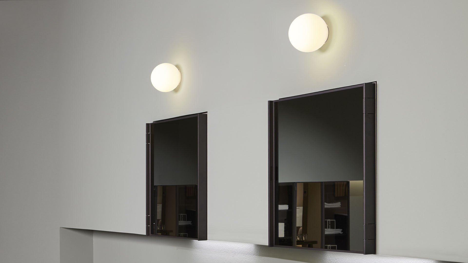 Led lamp in sand blasted pyrex glass with aluminum support complete with bulb.