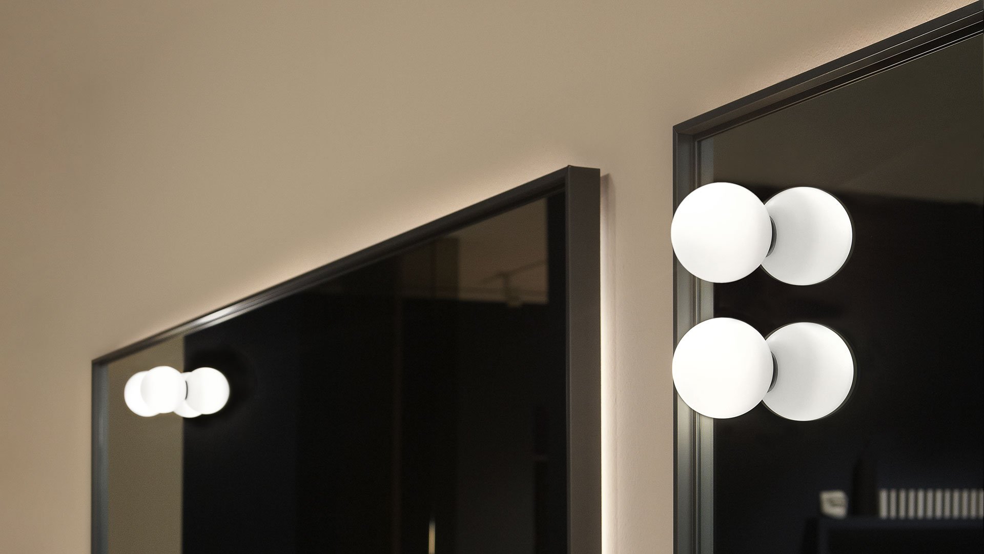 Pair of led lamps in pyrex glass with aluminum support, complete with bulb and transformer.