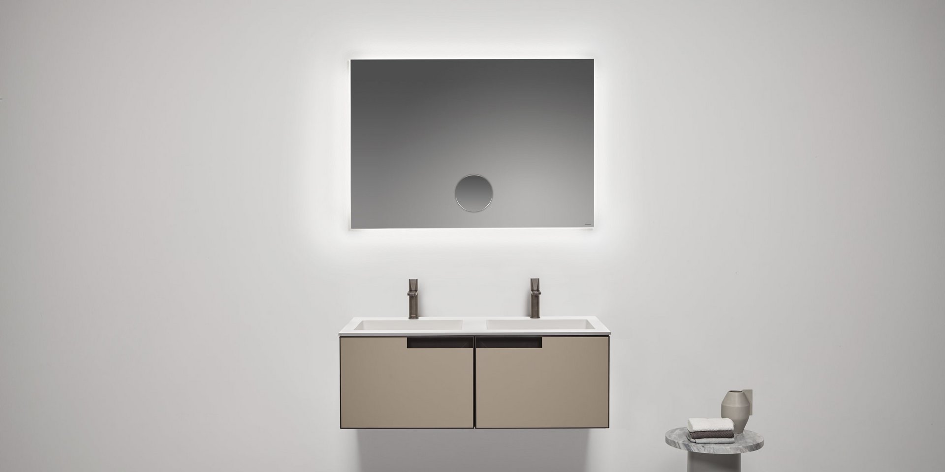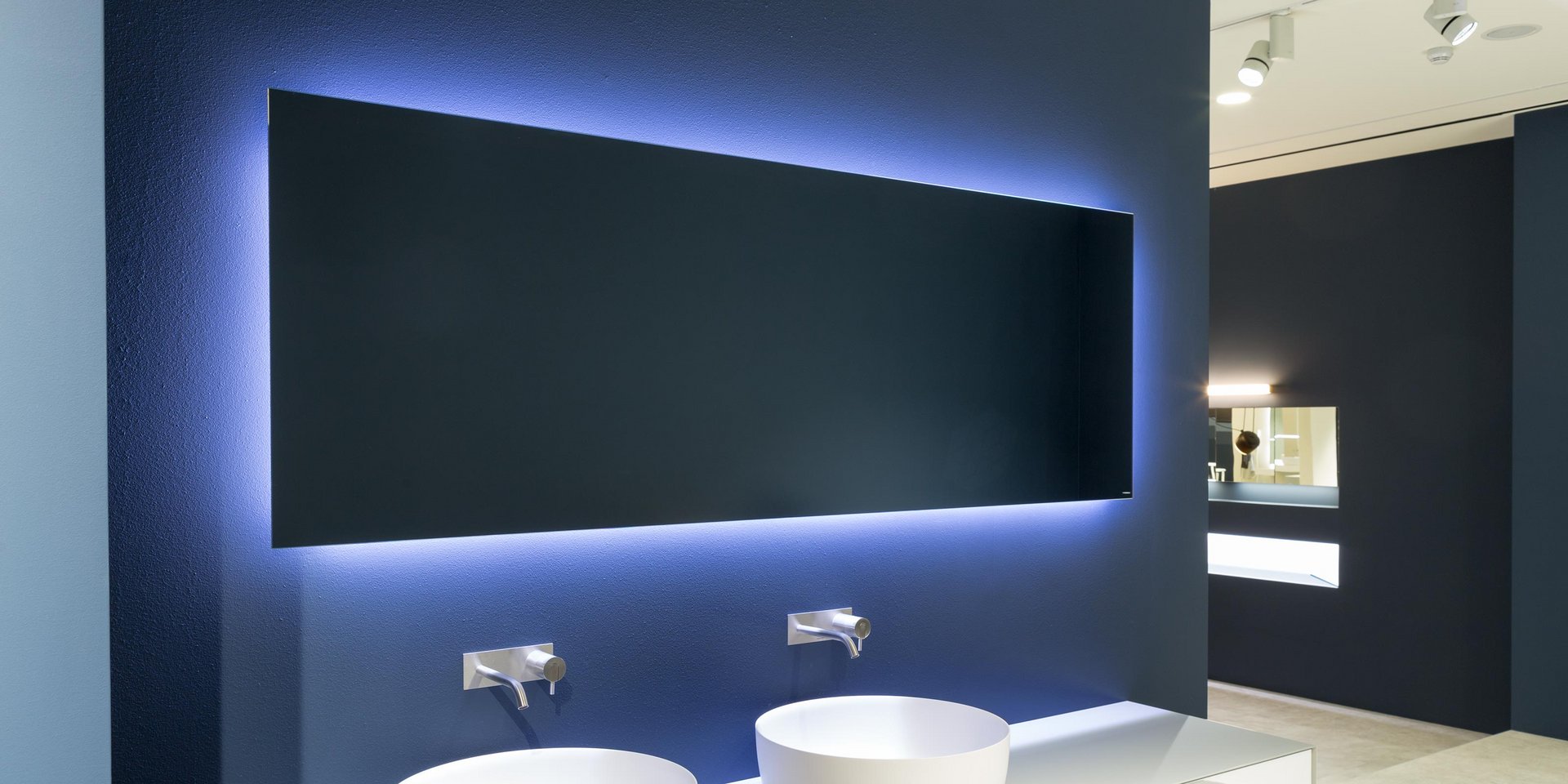 Polished edge mirror mounted horizontally or vertically with white led lighting complete with frame.