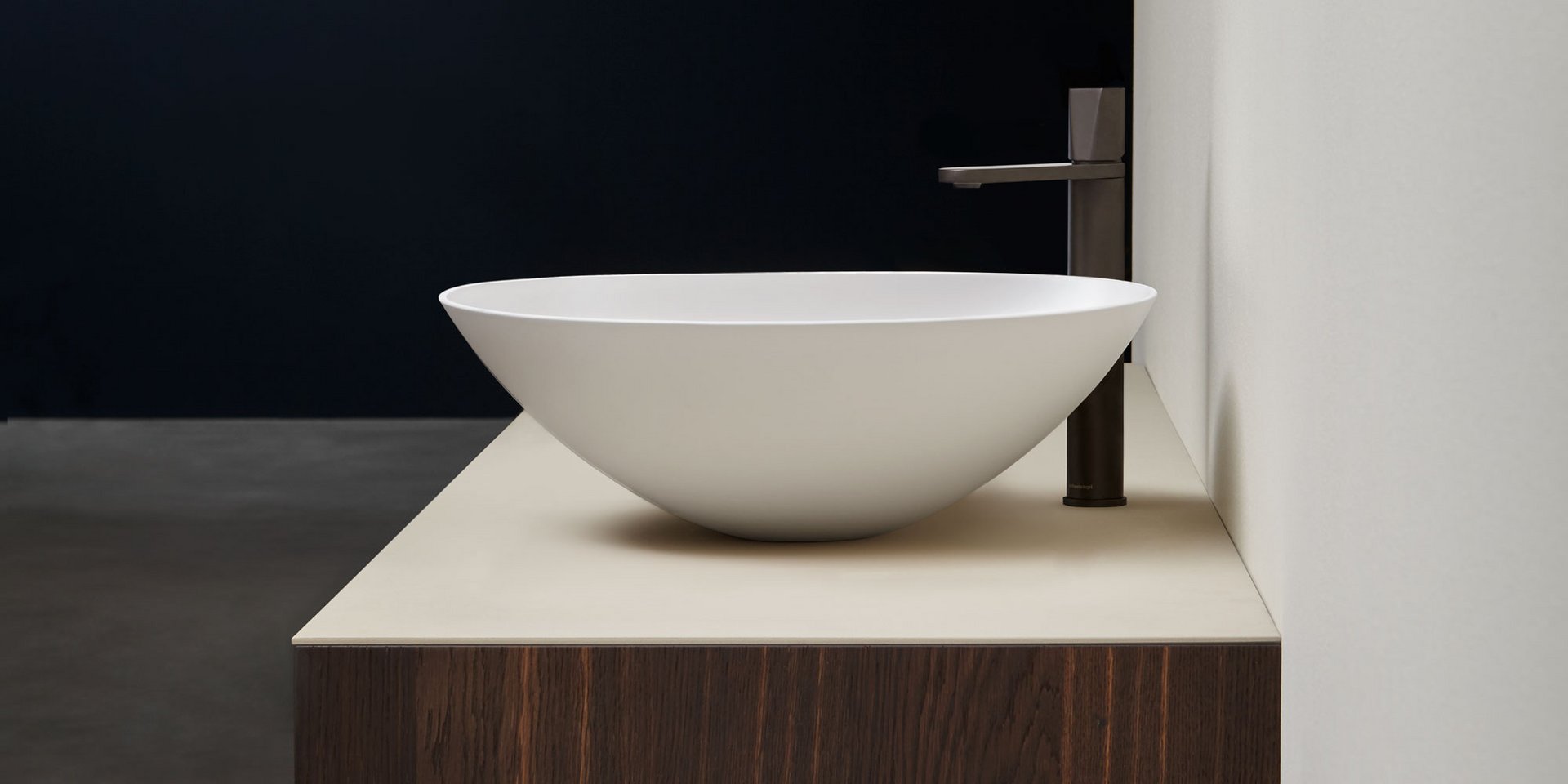 Oval top mount Flumood sink, can be externally lacquered in all colors of our collection, complete with