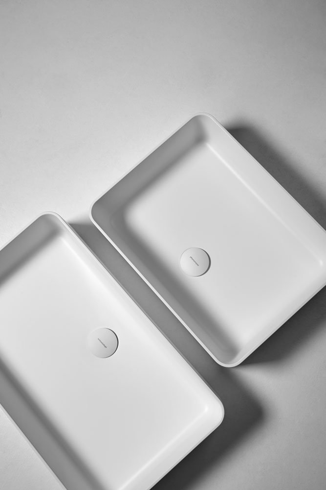 Rectangular top mount or undermount Flumood sink, can be externally lacquered in all colors of our collection,
