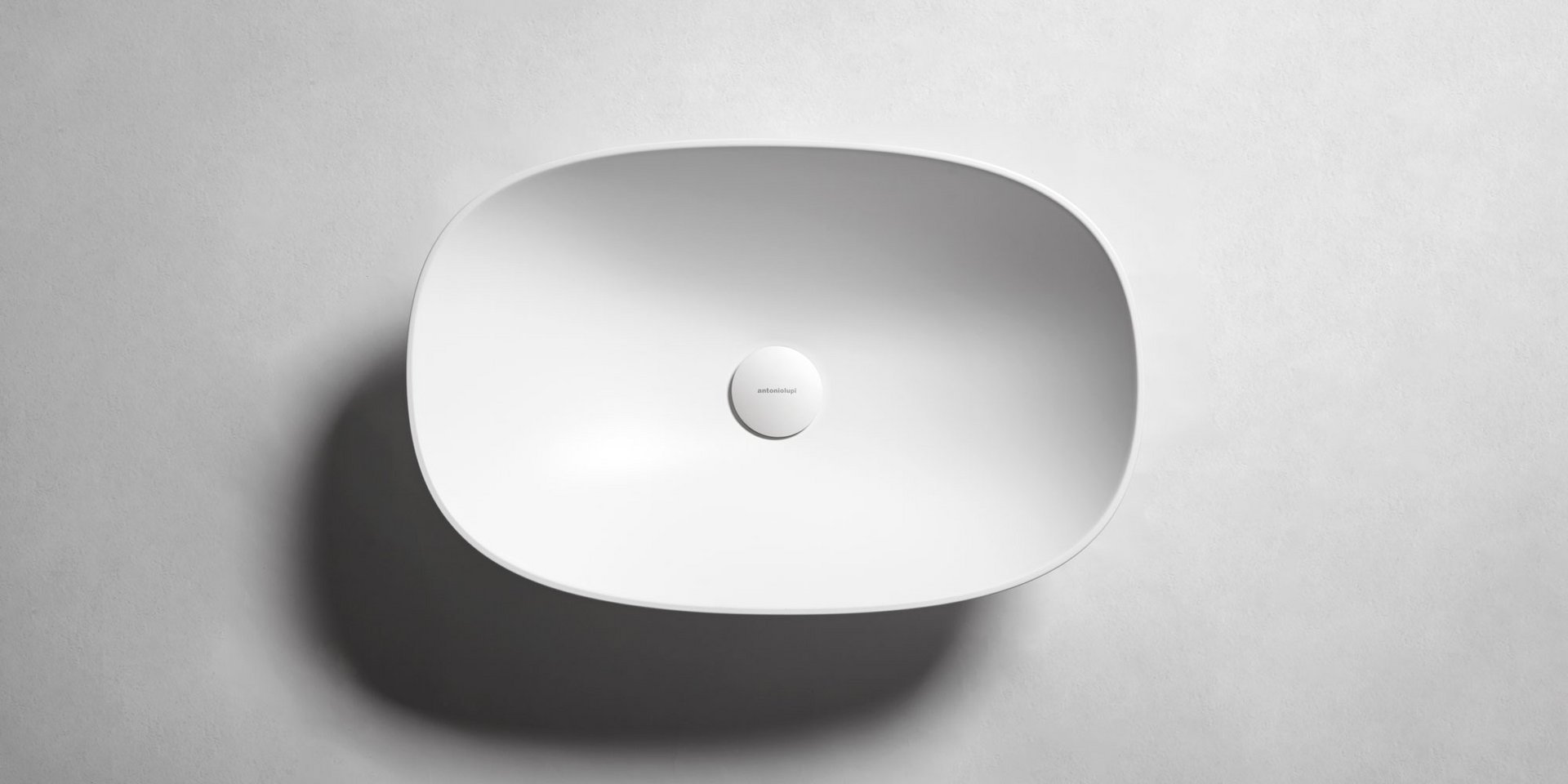 Round top mount Flumood, can be externally lacquered in all colors of our collection or Ceramilux sink complete with drain pipe fitting and open plug.