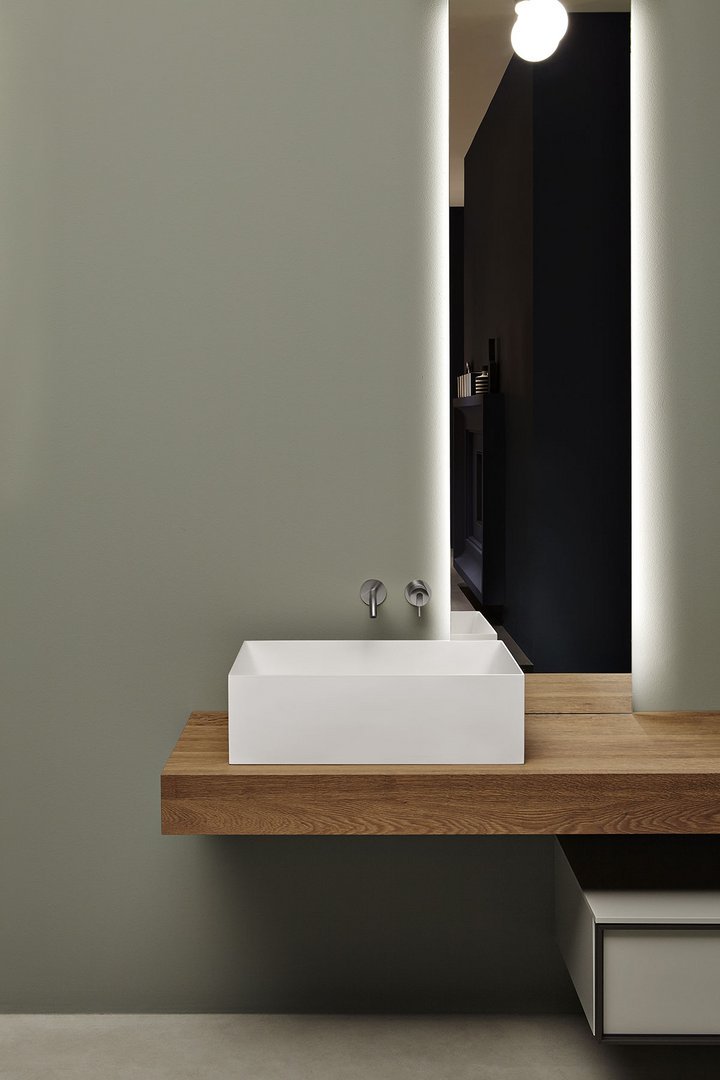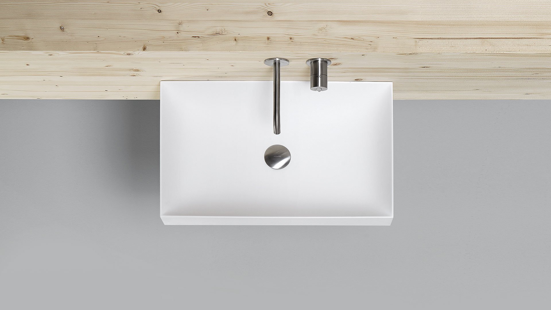 Square top or wall mount Flumood sink, complete with drain pipe fitting and open plug. Can be lacquered externally.