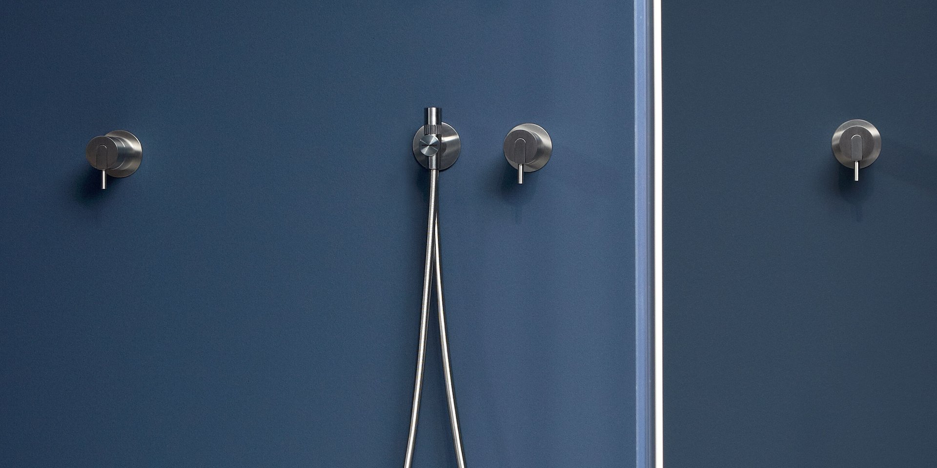 Satin stainless steel or graphite finish hand shower complete with wall support and water outlet, flexible hose 150 cm.