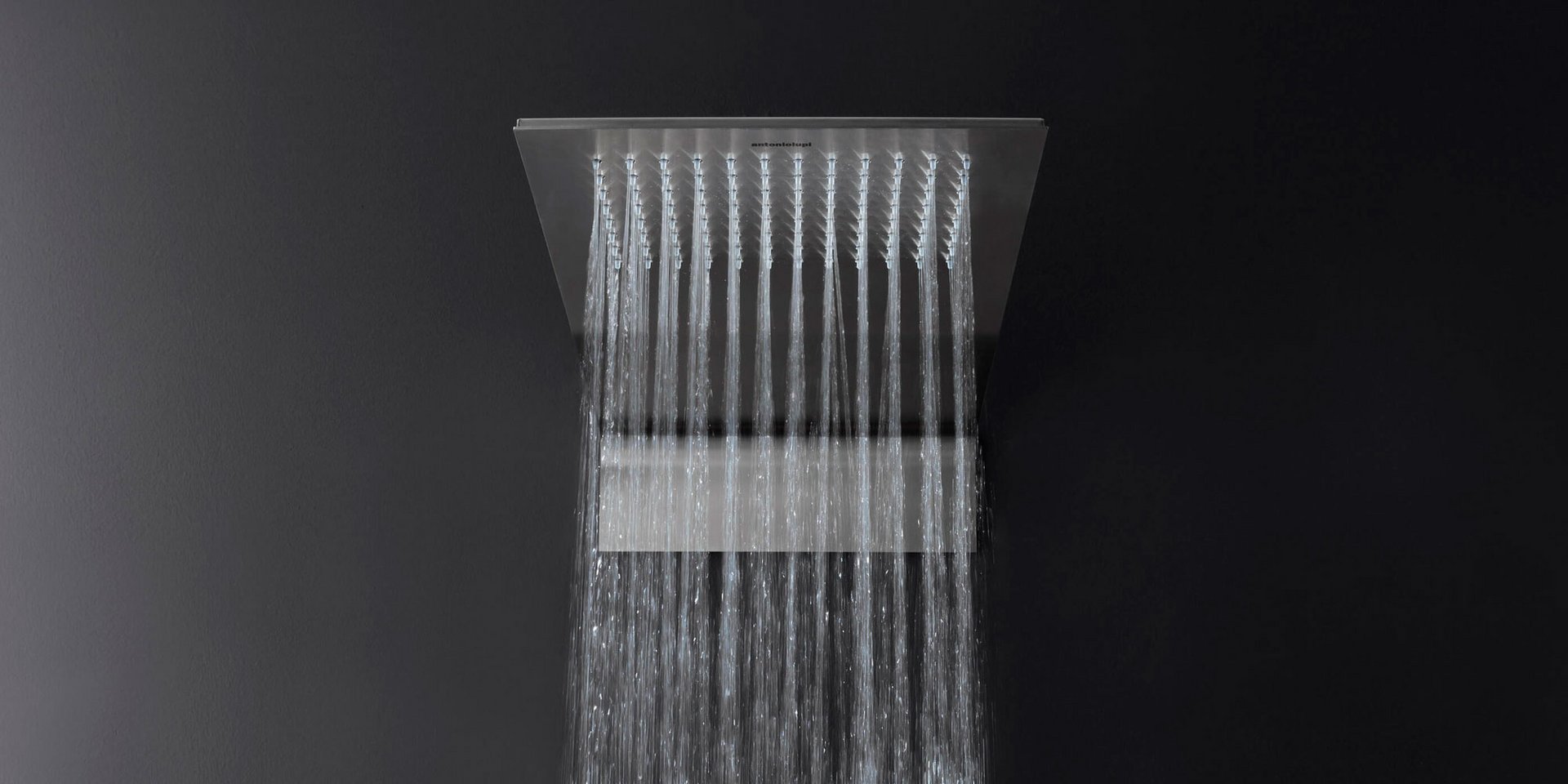 Satin stainless steel wall mounted showerhead.