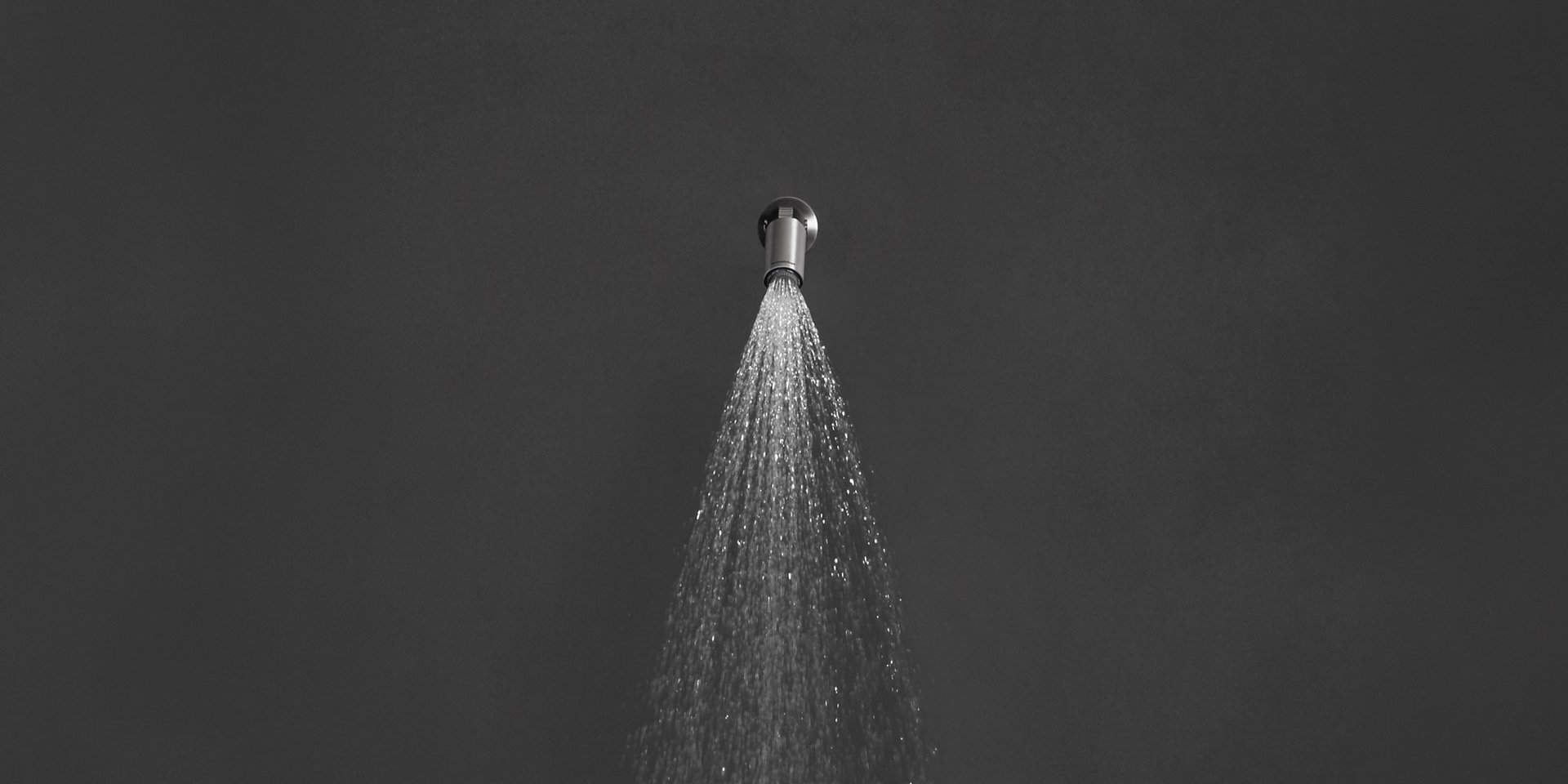 Wall or ceiling showerhead in stainless steel and black Delrin?, with jet regulation.