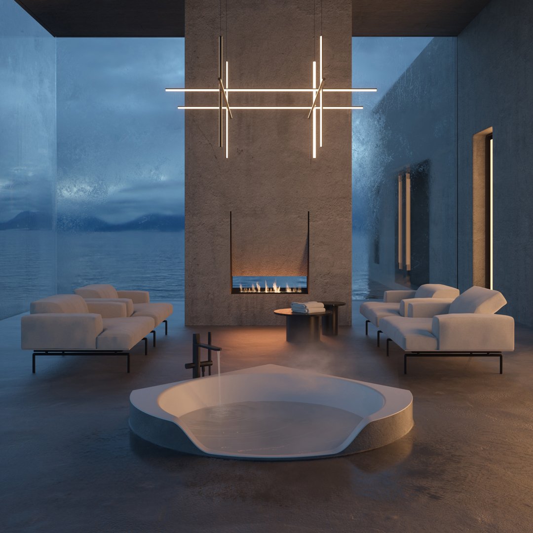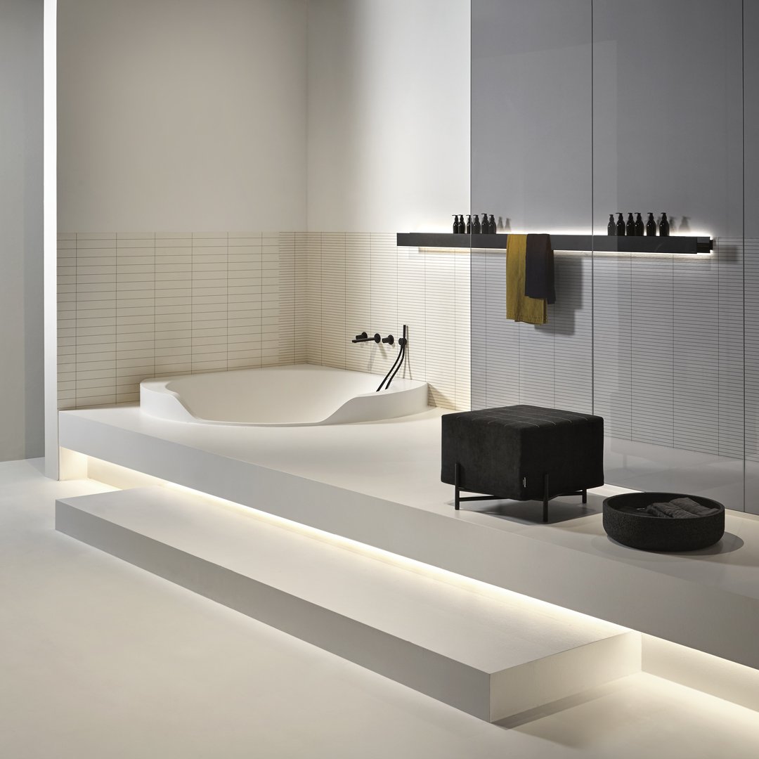 前面較低的邊緣邀請您進入,讓您完全沉浸在獨立式版本中,當它凹進地板并呈現(xiàn)一桶天然水的形象時。Ofuro 由 Flumood 制成,邊緣厚度可變,某些部分較寬,因此可以支撐物體和身體護理產品,其他部分較薄以減輕氣勢磅礴的體積。浴缸可以配備集成在底座上的 LED 燈,營造出優(yōu)雅、輕盈和懸浮的感覺。