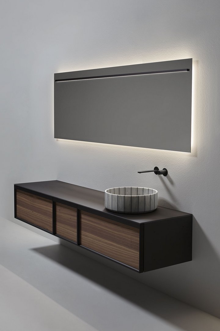 Lucentina 是一款設計極簡的燈,采用亞光黑色,在使用時與鏡子完全融為一體。配備直接和間接 LED 照明,長度不同,可放置在鏡子上的不同高度。