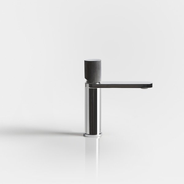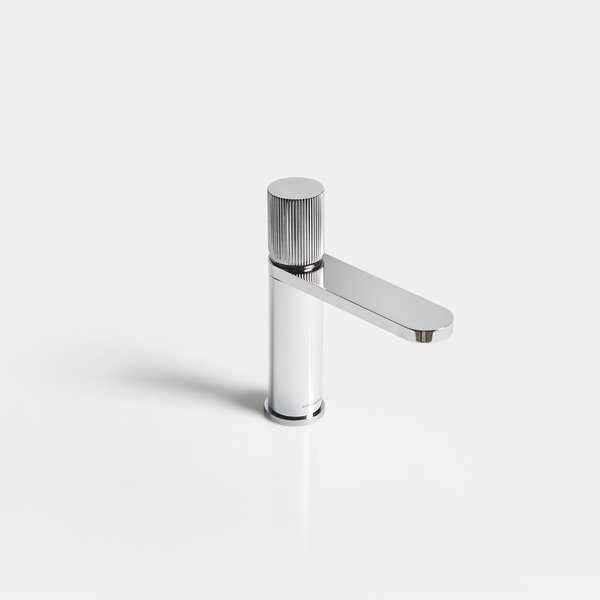 刻有線性凹槽的表面、一系列平行的痕跡和符號裝飾了圓柱形體積,為水龍頭的整體形象賦予了動態外觀。雕塑般的旋鈕成為 INDIGO_Rack 中的一顆明珠,該水龍頭系列具有清晰的幾何形狀和嚴謹的線條。由區分整個 Indigo 系列的明確定義的軌跡的垂直交叉生成的組合物,它在旋鈕中找到排他性和獨特的特征,具有剖析體積的對角線切割的特征。