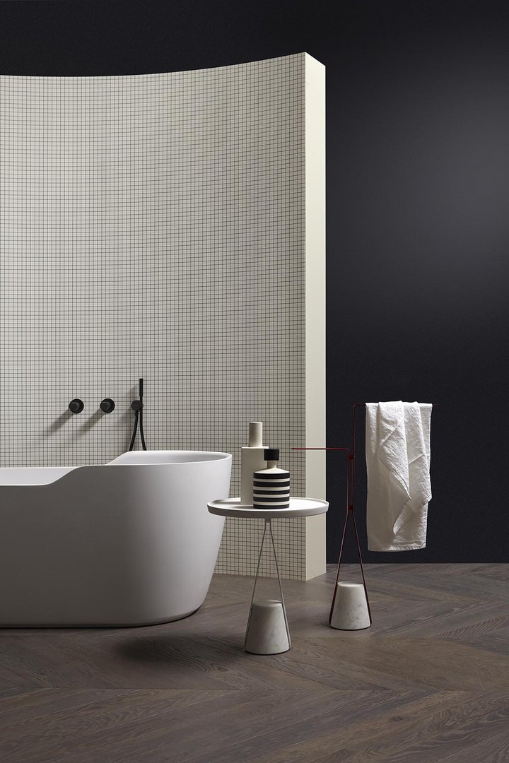 底座的材料特性,結構所描述的優雅路徑,結合在一起以實現平衡,這種平衡源于懸停在空中的愿望與反對它的重力之間的對比,將其固定在地面上。就像一個被向下拖拽的橡皮筋,但它隨后會遇到阻力和一致性,進而成為支撐。Halo 是一系列獨立的配件和桌子,重新定義了浴室內日常使用的功能元素的形象,但也可以用于房子的其他房間。