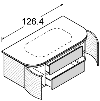 Portalavabo con struttura in nobilitato melaminico idro RAL7010 rivestita in FRASSINO laccato finitura Cotone, Canapa, China o NOCE CANALETTO NATURALE. Frontali cassetto/cestone in cristallo smaltato o decorato (Bianco assoluto 30/ specchio). Apertura/ chiusura manuale.