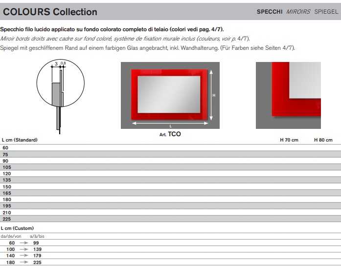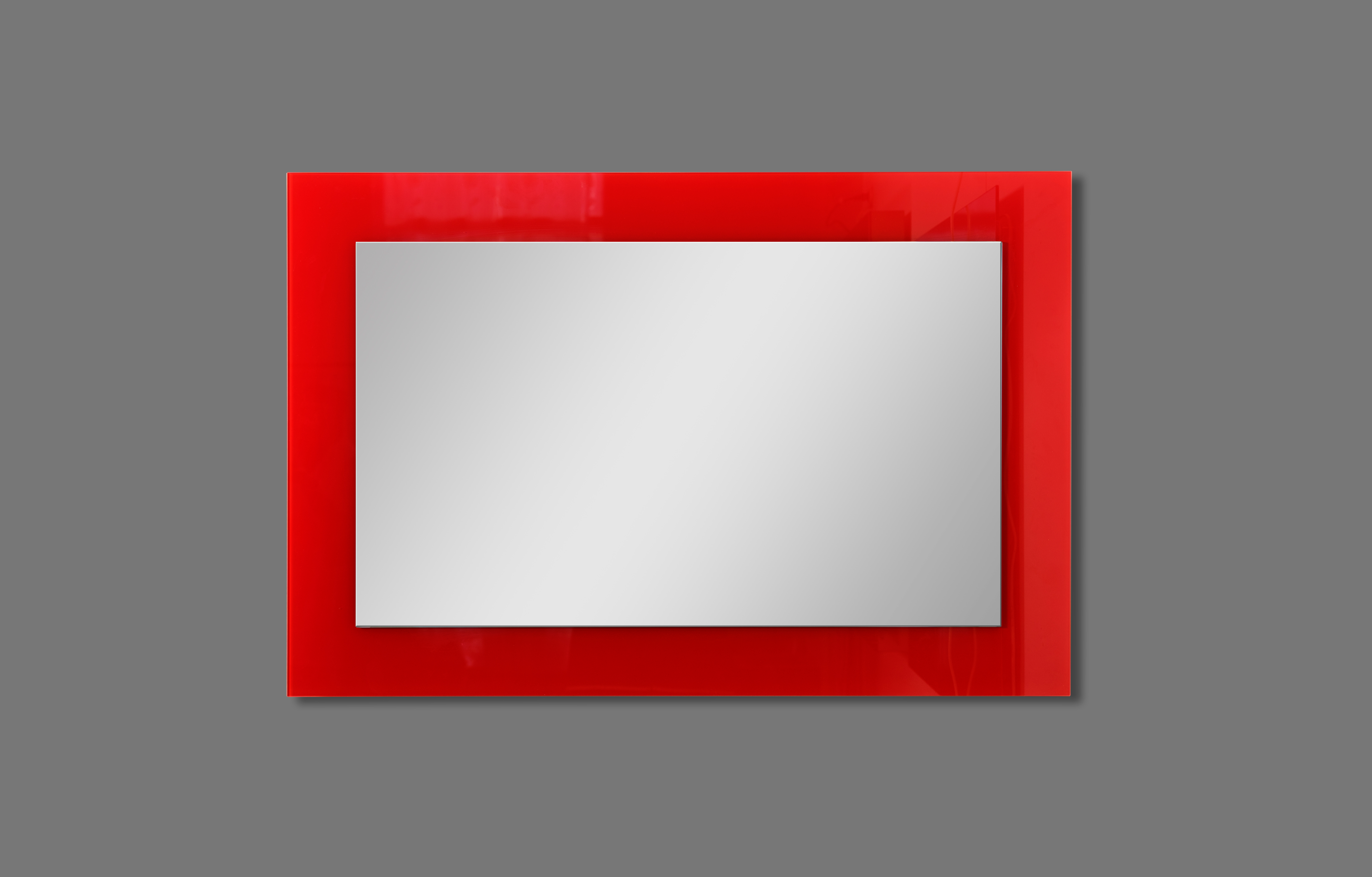 Specchio filo lucido applicato su fondo colorato nero o bianco completo di telaio.