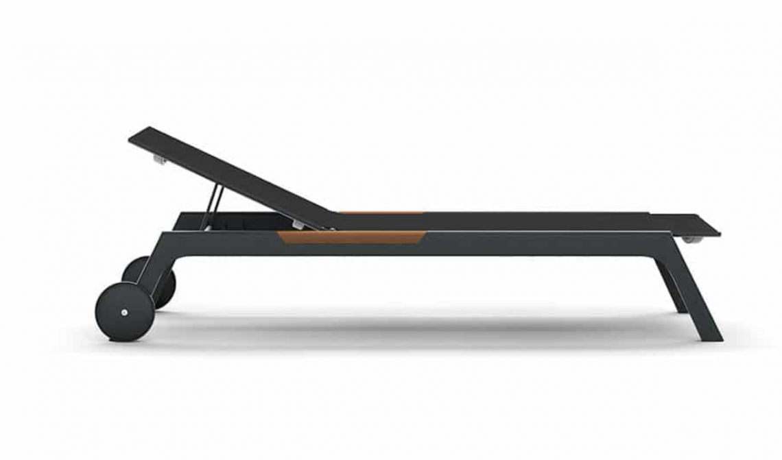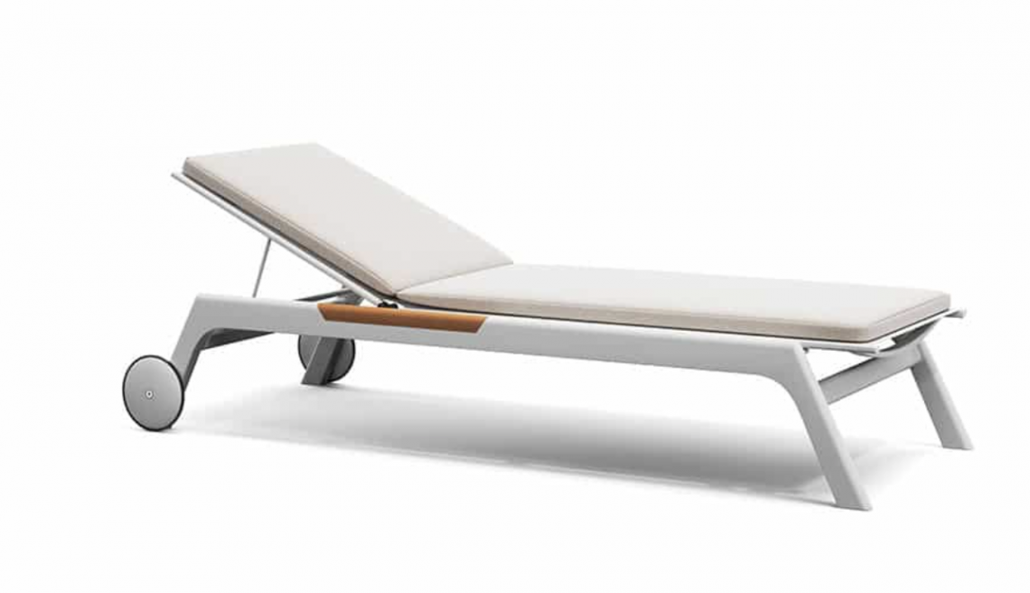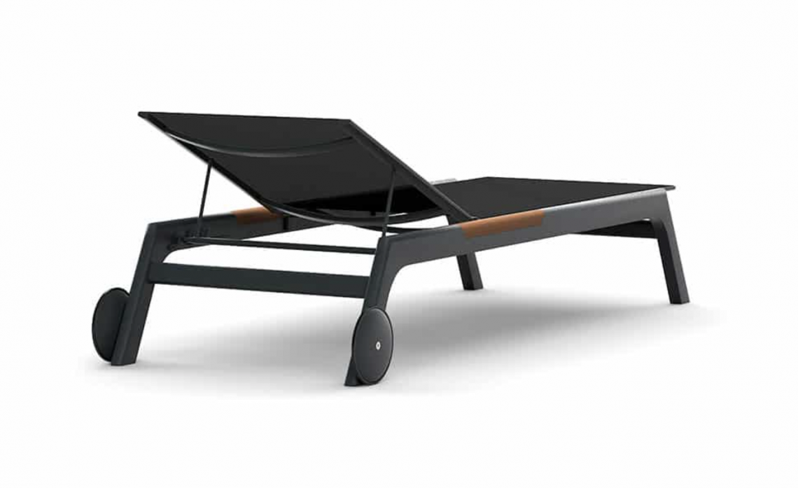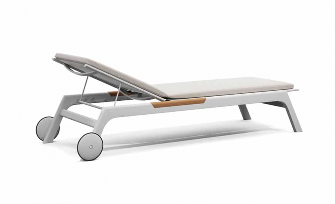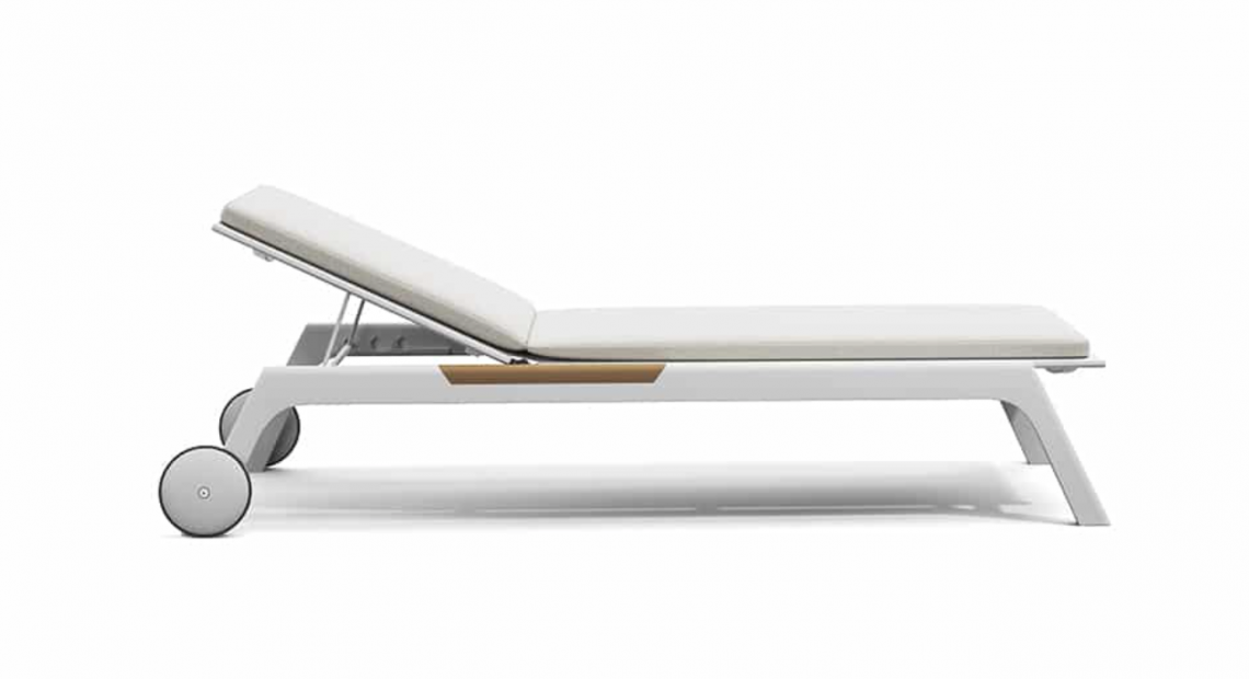 Puro, pulito e senza tempo. Il lettino in alluminio grafite o bianco con inserti in teak risulta ideale per lo spazio esterno e adattabile a qualsiasi contesto dal residenziale al hospitality.
