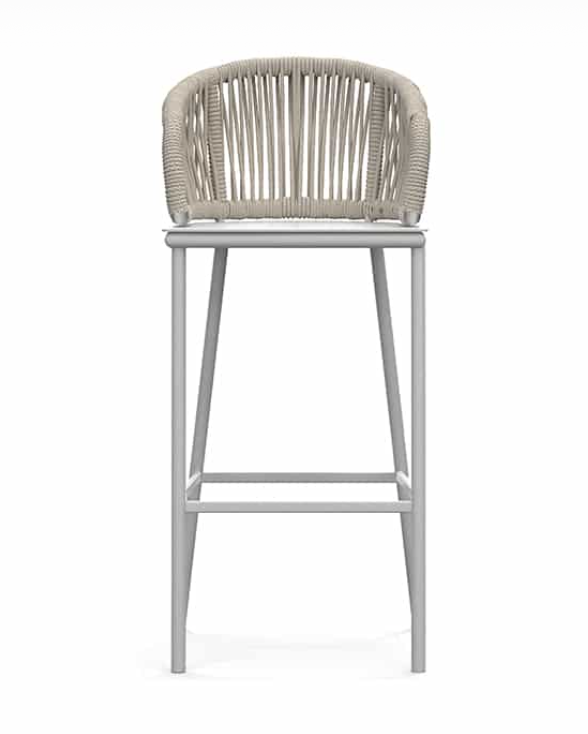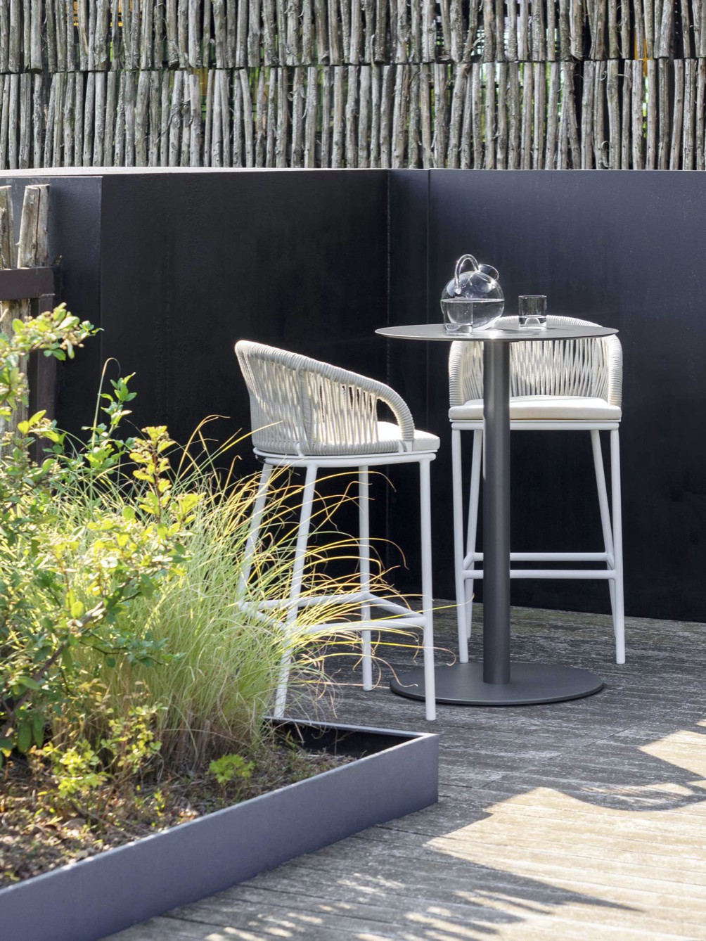 Design pulito e minimale descritto in una struttura completamente in teak intrecciata da una corda rotonda che crea una maglia morbida e di forte tenuta. Un nido accogliente diventa spazio di conversazione e lettura.