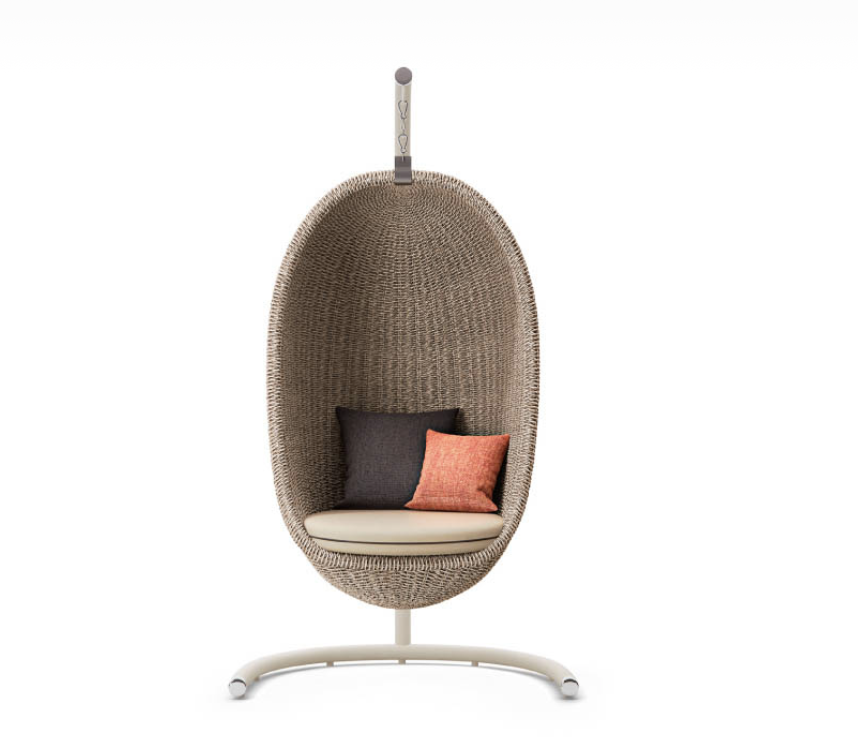 Strutture in alluminio verniciato epossidico per esterni. Intreccio in estruso di polietilene solidificato ad acqua, intrecciato a mano.