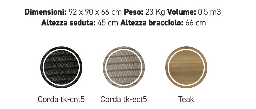 Design pulito e minimale descritto in una struttura completamente in teak intrecciata da una corda rotonda che crea una maglia morbida e di forte tenuta. Un nido accogliente diventa spazio di conversazione e lettura.