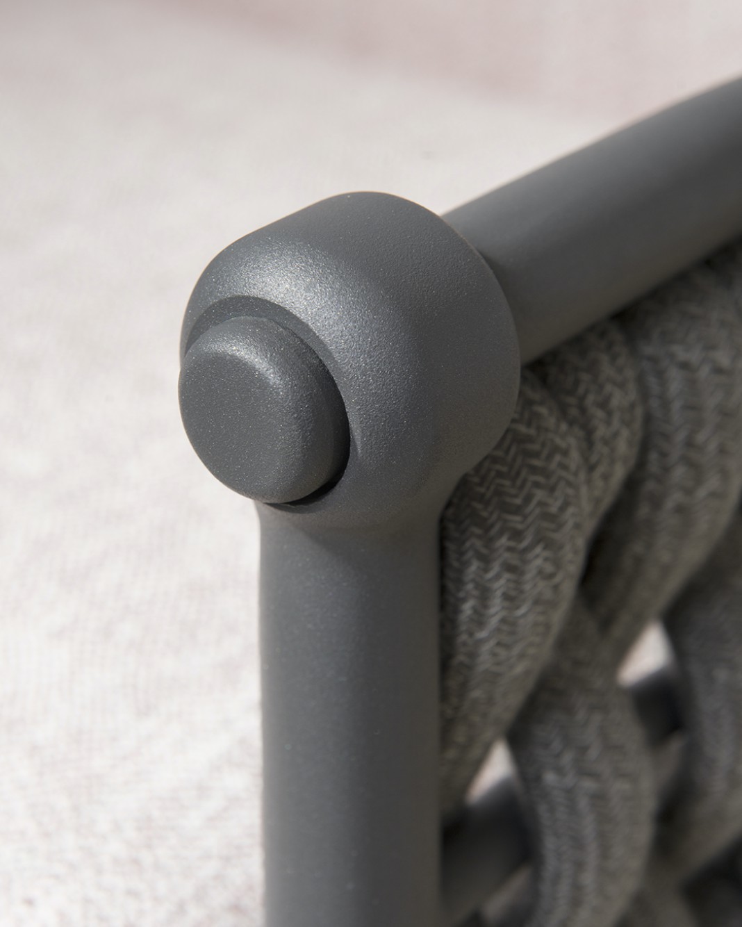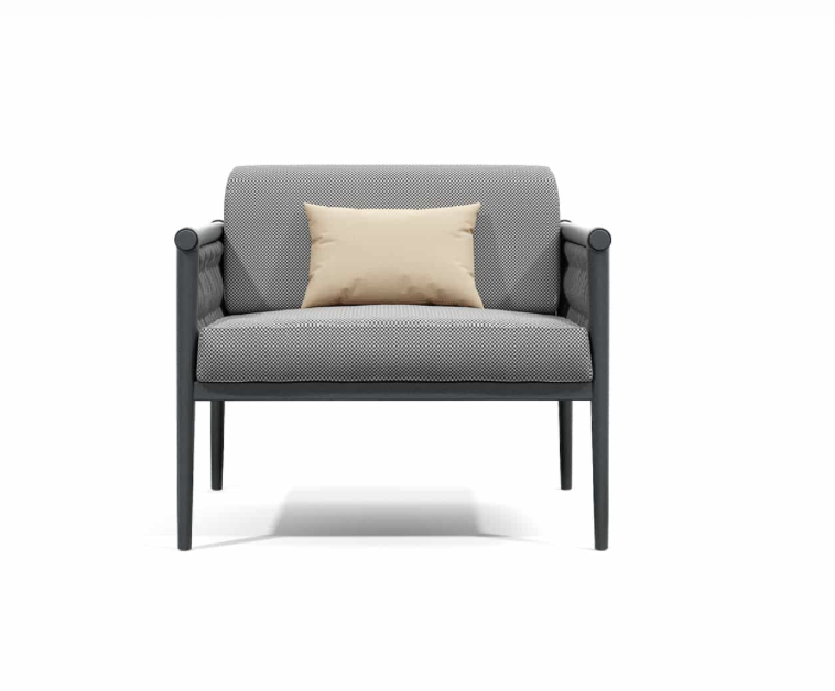 Come in una cravatta il nodo diventa dettaglio di eleganza ed elemento di distinzione, Dandy interpreta il concept attraverso una struttura in alluminio intrecciata da morbide corde.