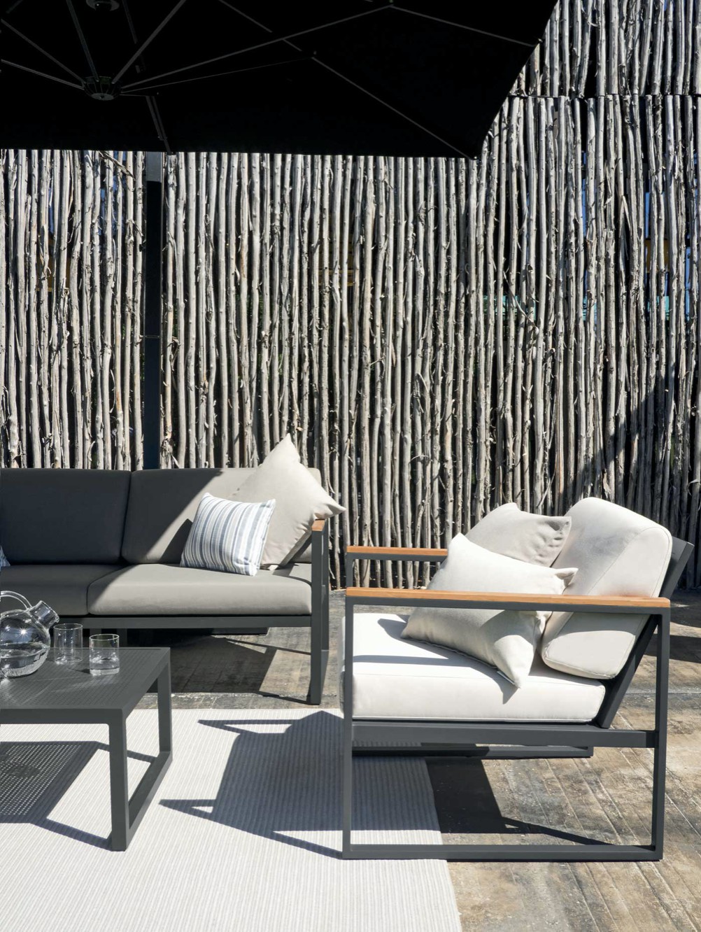 Cuscinature sfoderabili e lavabili in tessuto per esterni.