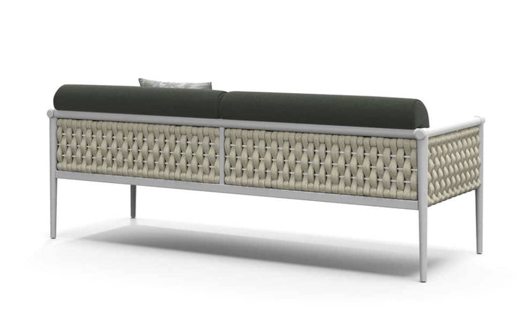 Come in una cravatta il nodo diventa dettaglio di eleganza ed elemento di distinzione, Dandy interpreta il concept attraverso una struttura in alluminio intrecciata da morbide corde.