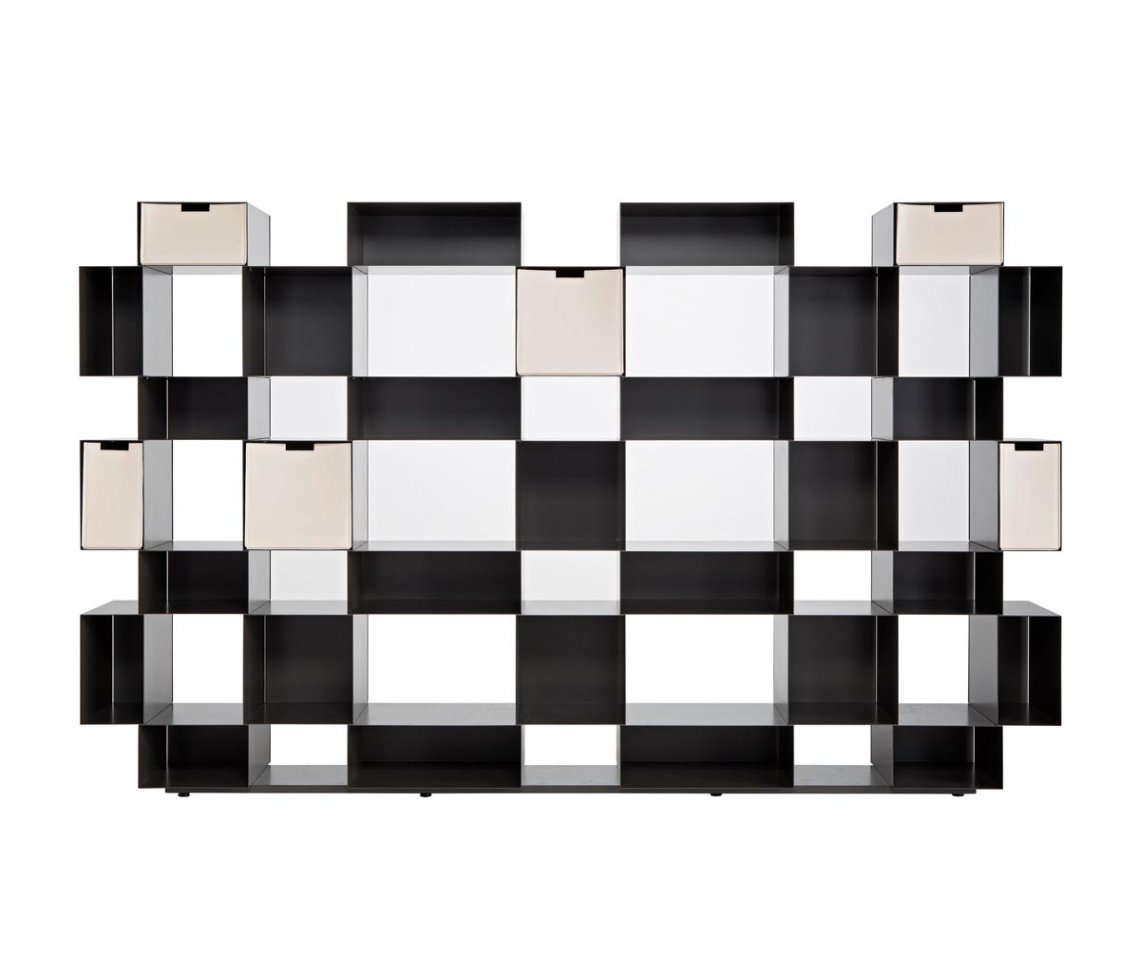 Geometria e rigore caratterizzano la particolare libreria a giorno Eresia che coniuga design e funzionalità.In Eresia i volumi si alternano in un equilibrato gioco di proporzioni. Cubi e parallelepipedi sono intervallati da aperture a giorno in una ludica alternanza di “vuoti” e “pieni”.Estremamente modulare e componibile, Eresia si inserisce perfettamente in qualsiasi ambiente, dall’ufficio alla zona living: un complemento d’arredo di estrema razionalità che può essere utilizzato anche per separare due diversi ambienti domestici.