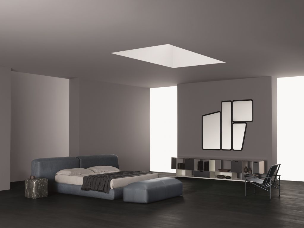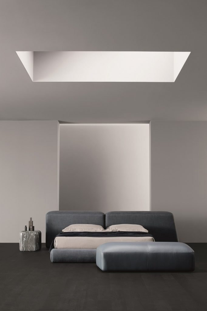 Un’antica strada romana, lastricata di pietre levigate dal tempo, affiora in un bosco o da un campo di grano e prende corpo: le geometrie assumono forme tridimensionali e in un originale gioco di volumi danno vita allo schienale del letto Lapis. Nella versione asimmetrica, lascia spazio alla possibilità di affiancarci un comodino, da Amura proposto con la collezione Lapis coffee table.