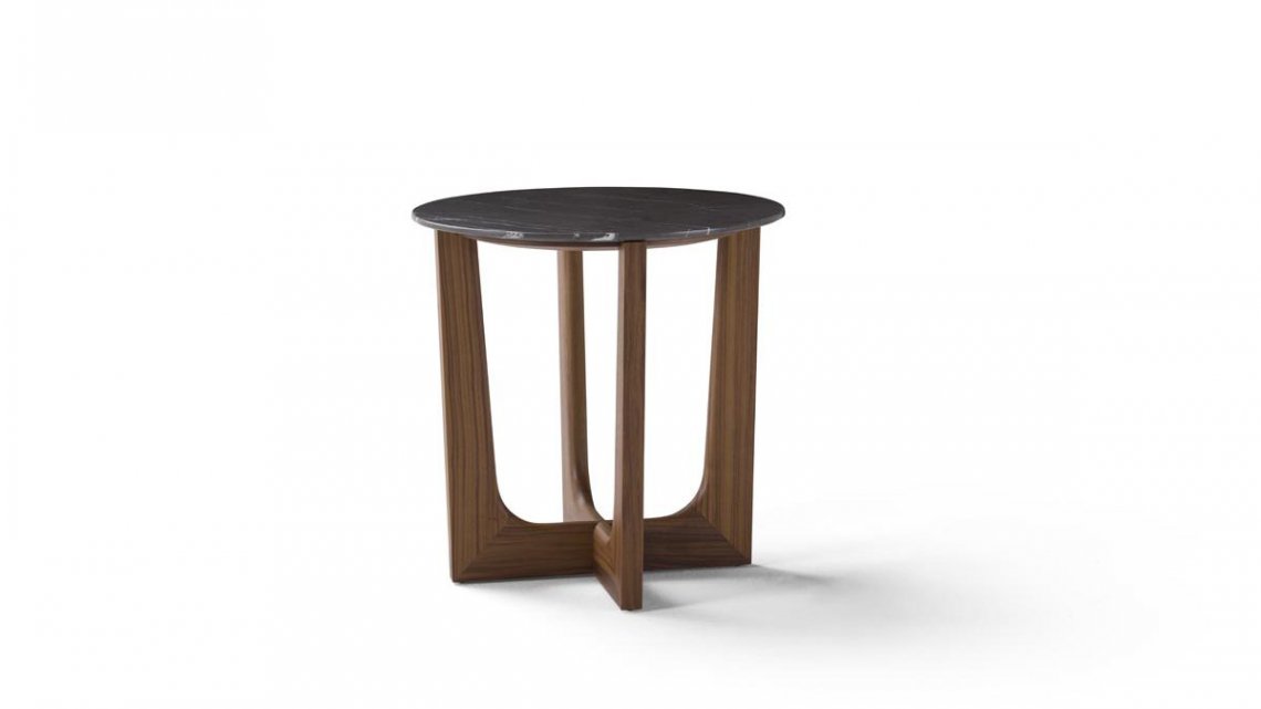 Vesta è una collezione di coffee table con struttura in legno e top in marmo.