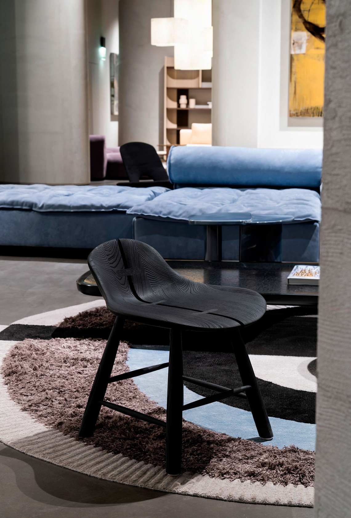 Like sculptures, the elements in the Himba collection have a powerful, compact lightness, capable of fitting into the spaciousness of a living room or an organised study, or in the cosiest corner of a bedroom. Their delicate rigour, made up of flowing, open lines, traces airy, unusual perspectives in an interior. The space opens up, appears expanded; light finds new ways to get through, nourishing a relationship between inside and outside capable of expressing both encounter and possibility.